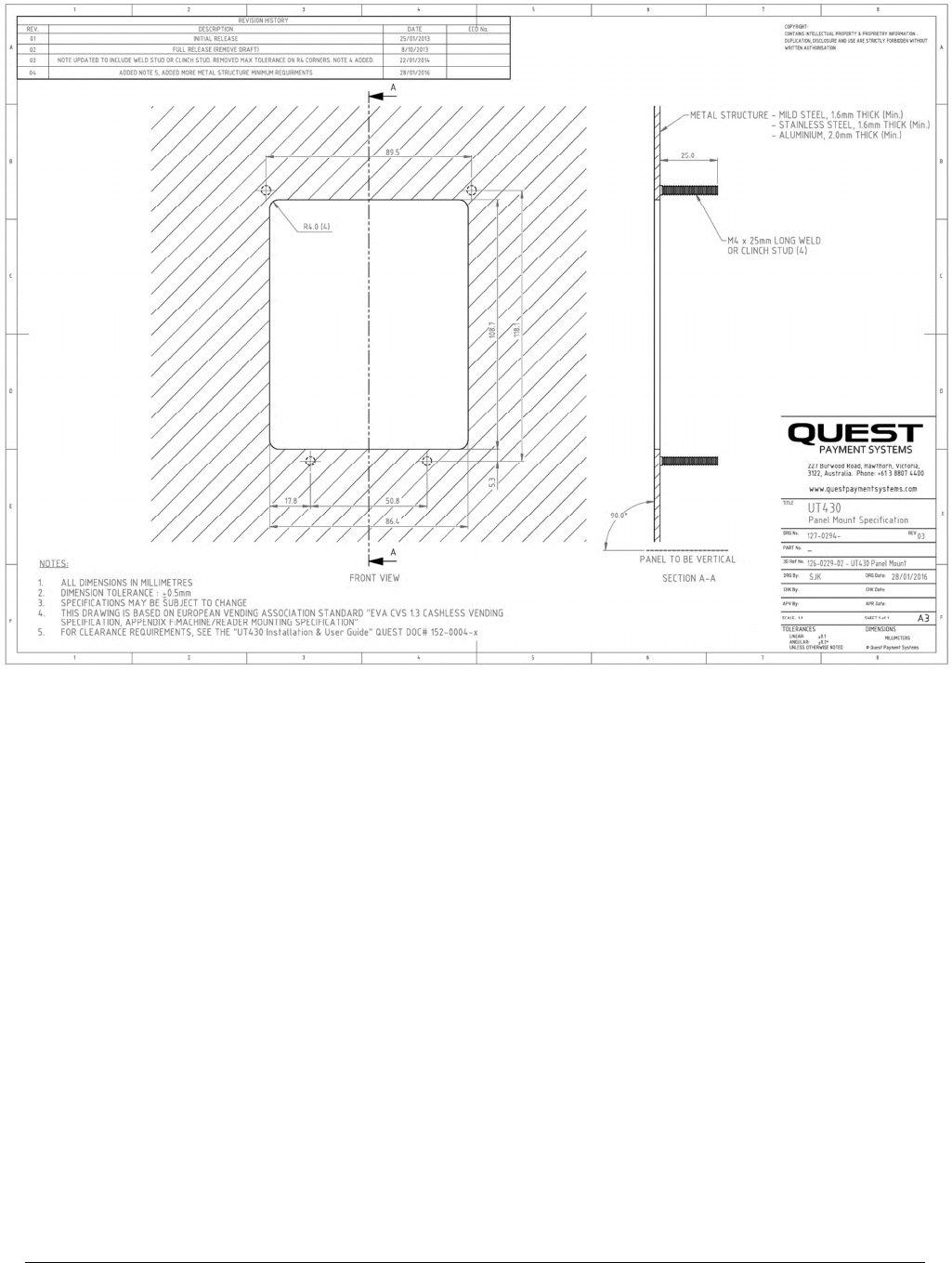 Quest Payment Systems Pty Ltd UT430 Unattended Payment Terminal 152 0004 14 UT430 Installation Guide