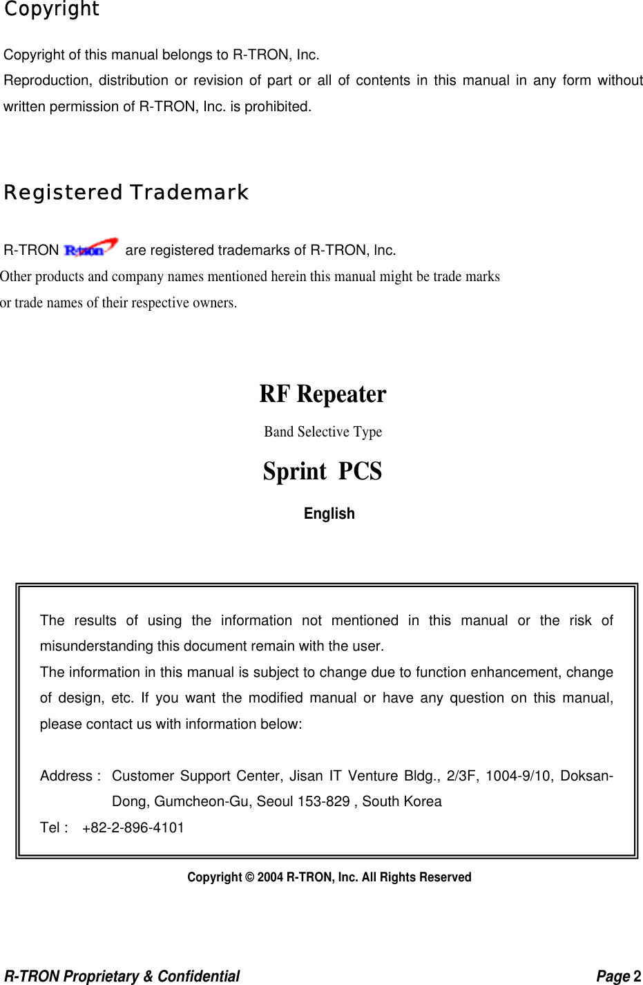 R tron NRPCS10B NOTCHCELL Repeater User Manual Manual revised
