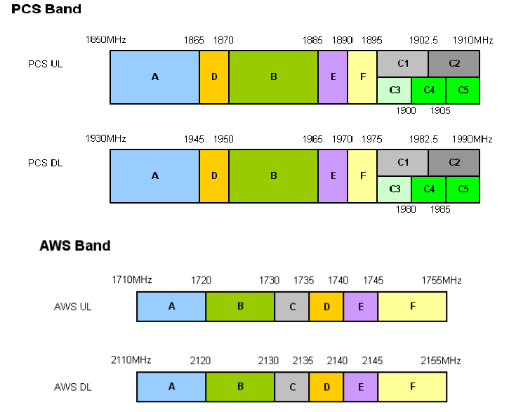 contiguous AWS sub-bands of 5, 10 or 15 MHz