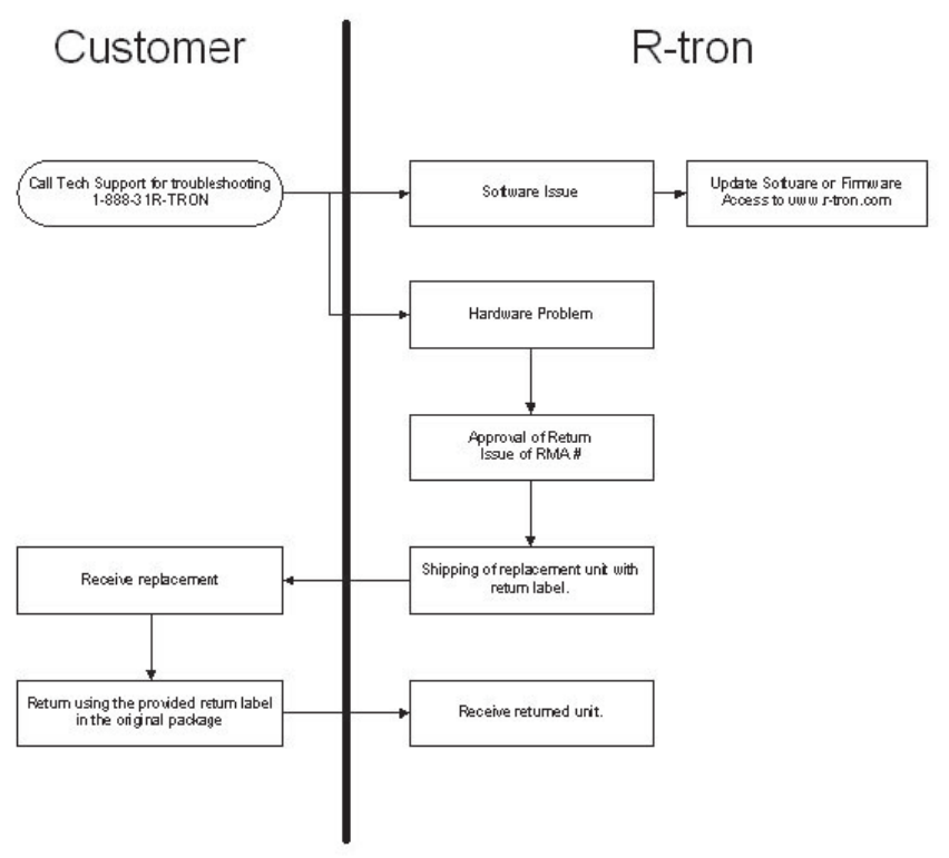 2. If the device has a hardware problem, R-tron will replace it if it is within warranty.