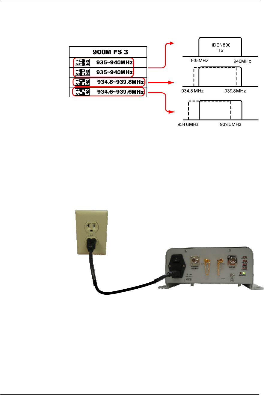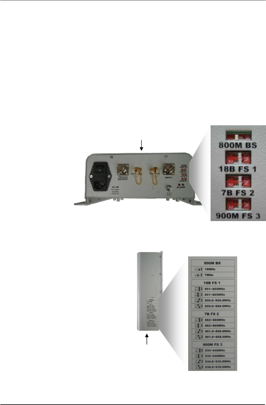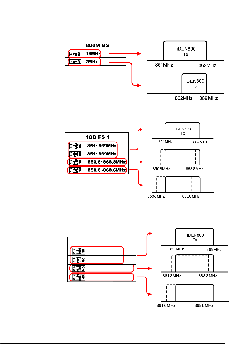 by the dip switches located at the bottom of iDEN Add-On Filter Box.