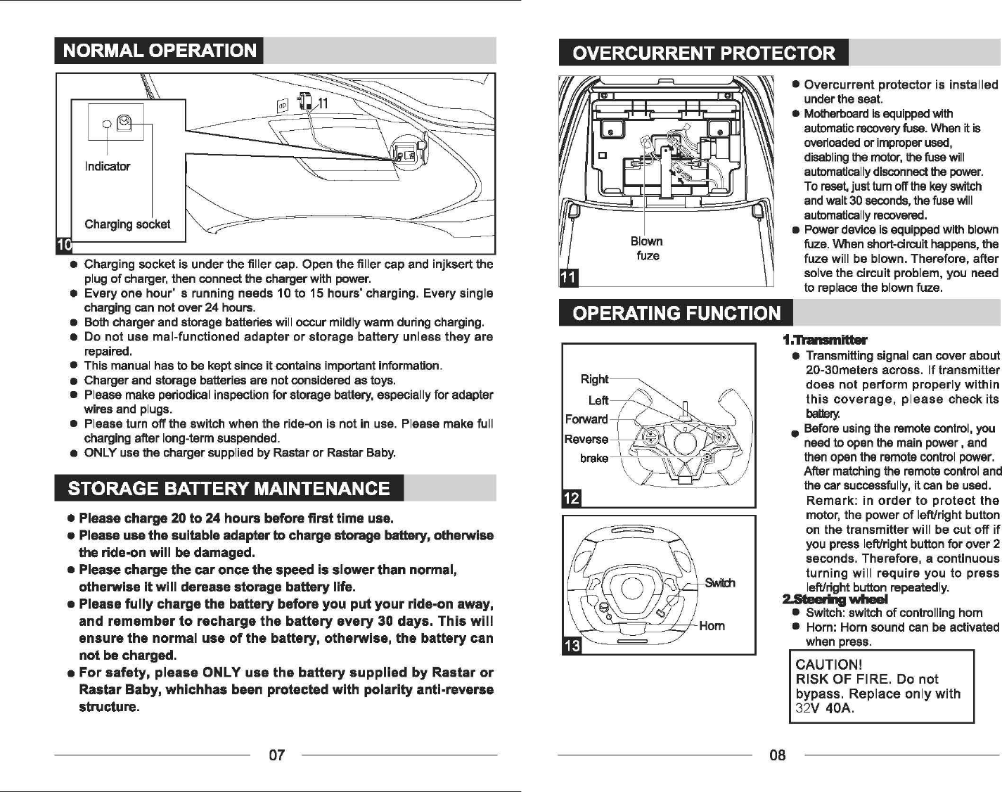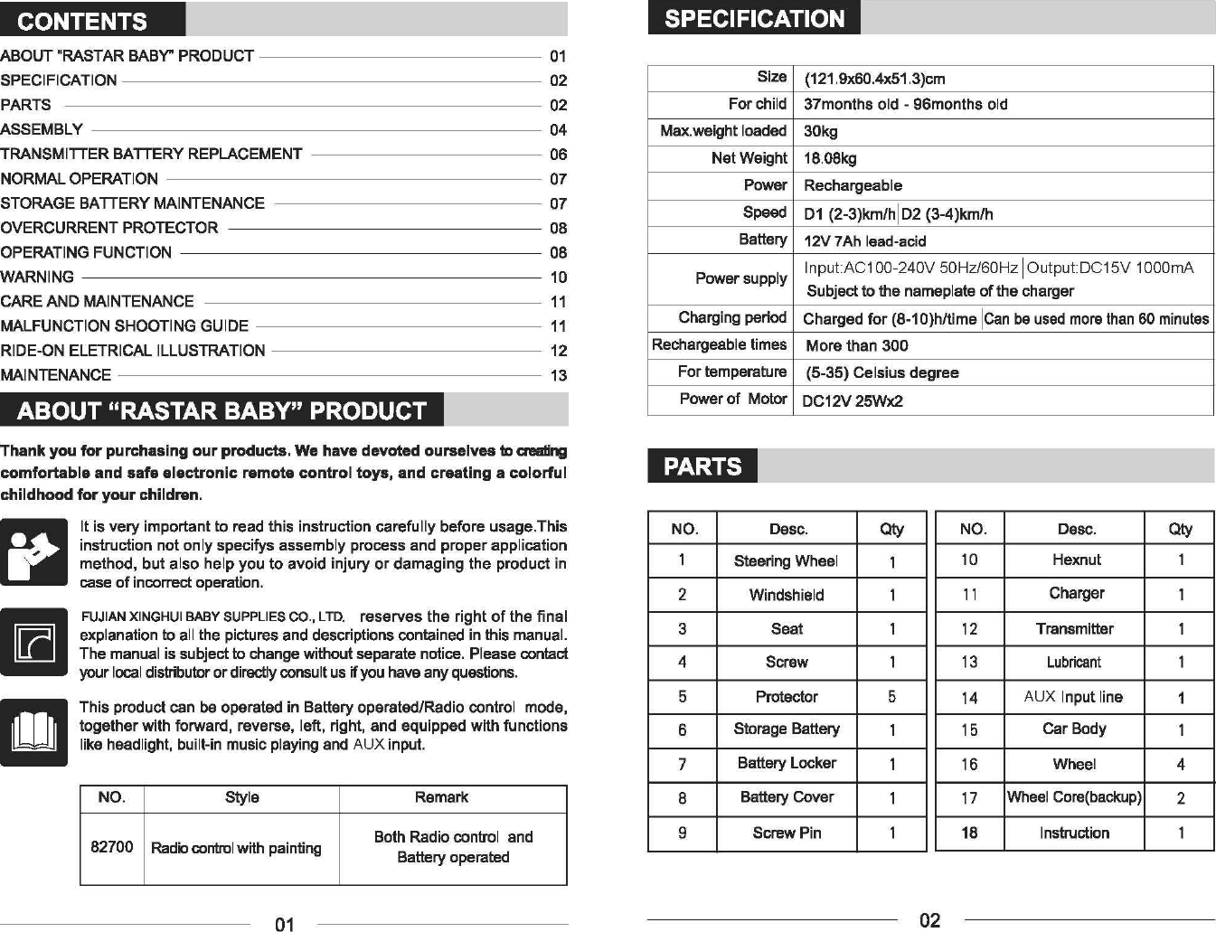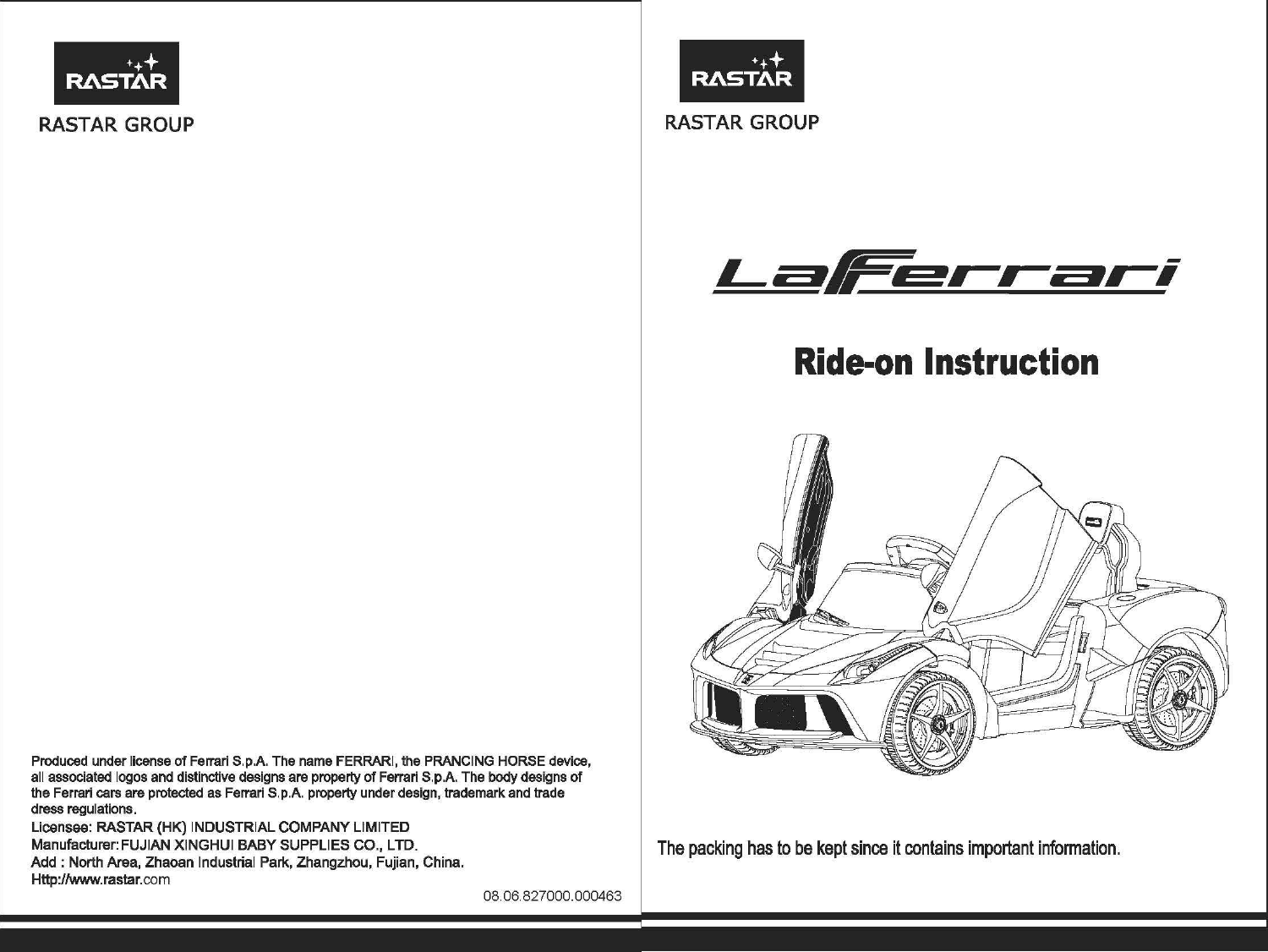 RASTAR GROUP XH170523FE Battery Operated Ride-on User Manual