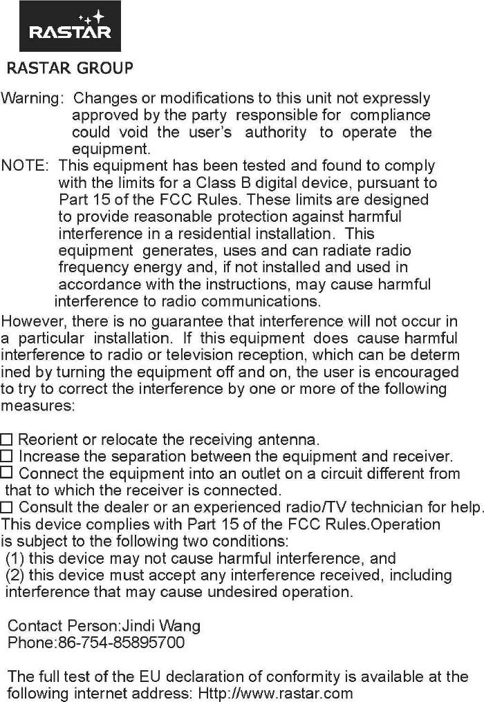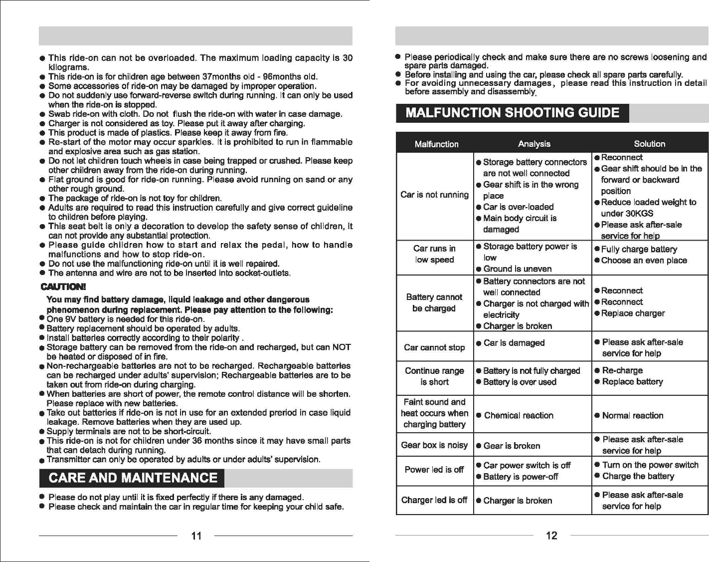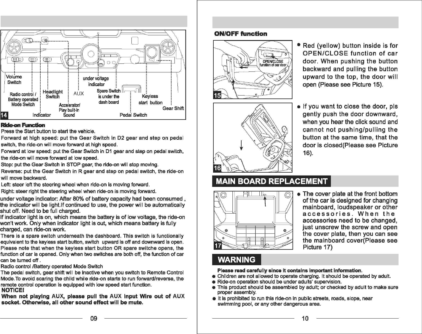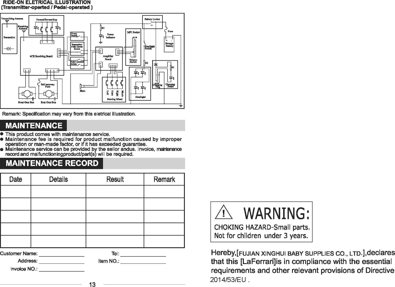 RASTAR GROUP XH170523FE Battery Operated Ride-on User Manual