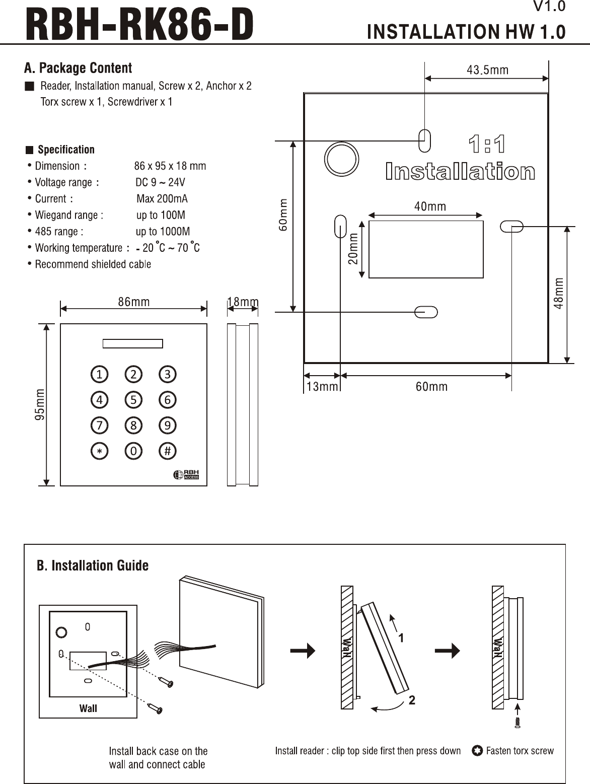 RBH Access Technologies RBH-RK86-D Reader User Manual RBH RK86 D RBH