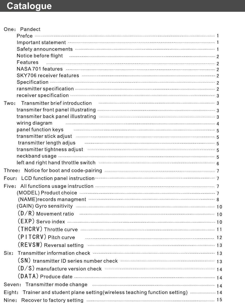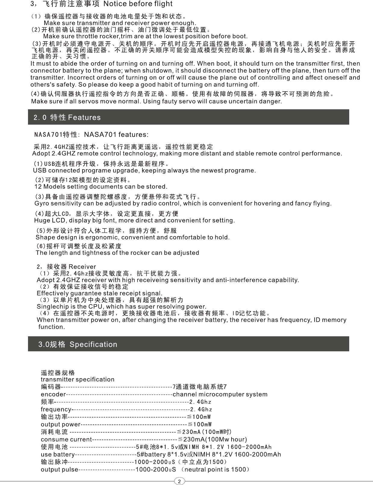 RC Model Fun NASA701 RADIO CONTROL User Manual