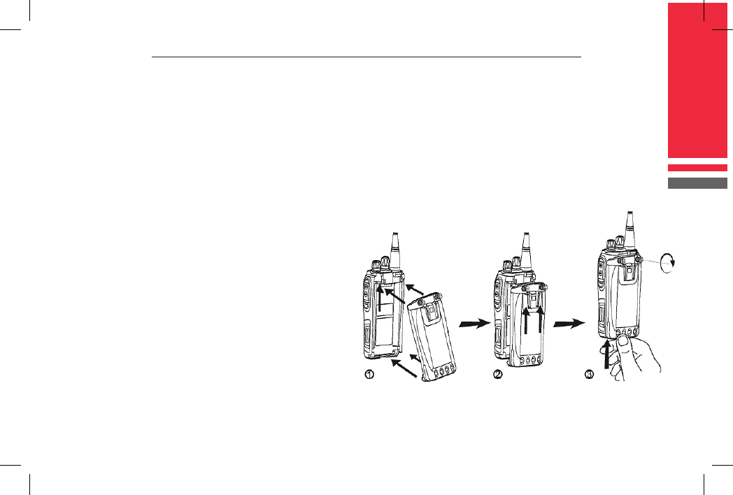 • DO NOT touch the metal surface of the antenna (in extended position) when he radio is transmitting. RF discomfort may result.