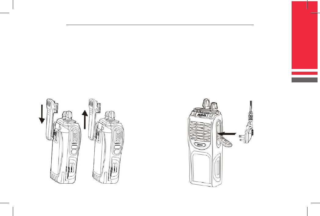 • When worn on the body, always place the radio in a RCA Communications Systems -approved clip, holder, holster, case, or body harness for this product. Using