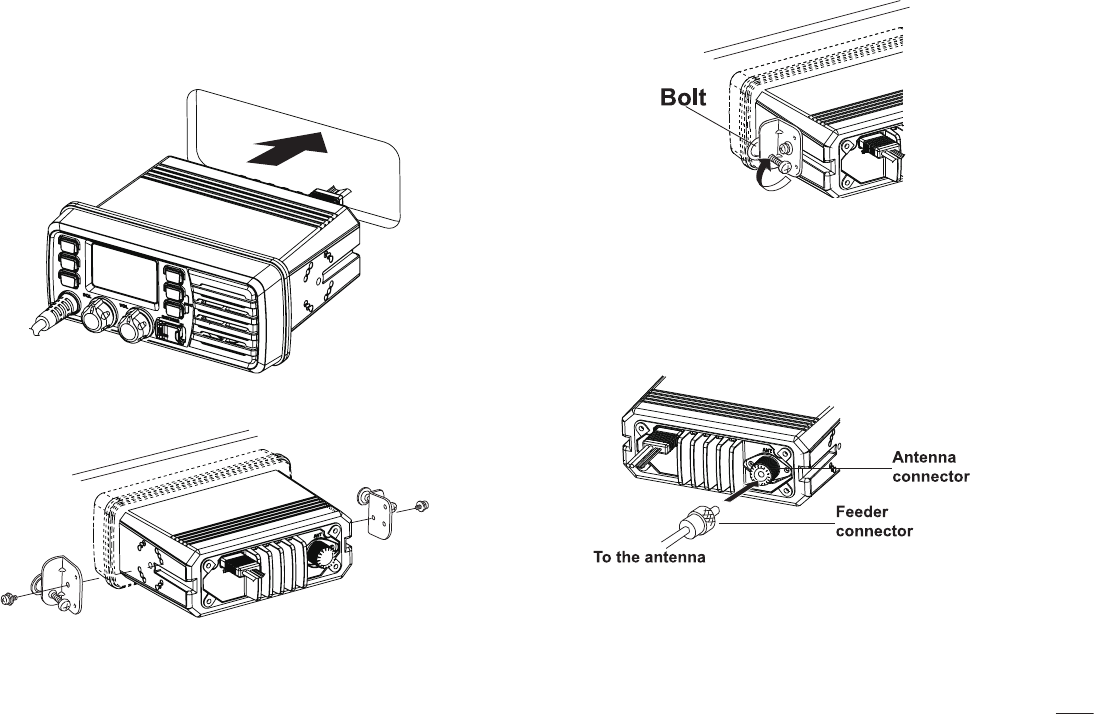 of sight when operating it and tighten the knob bolts so that the transceiver
