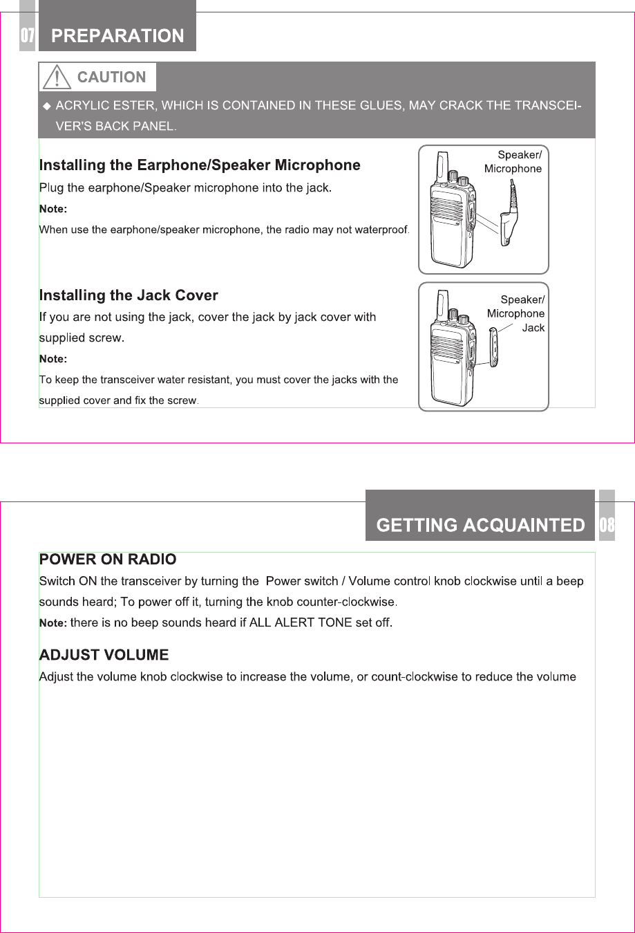 2.5 cm (one inch) from the body when transmitting. Keeping the radio at the proper