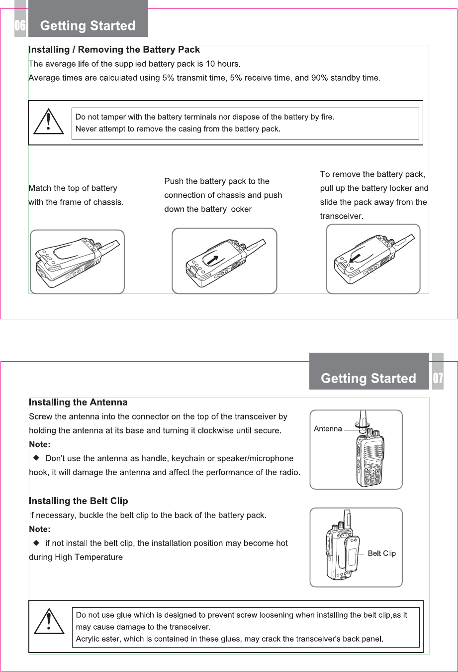 2.5 cm (one inch) from the body when transmitting. Keeping the radio at the proper