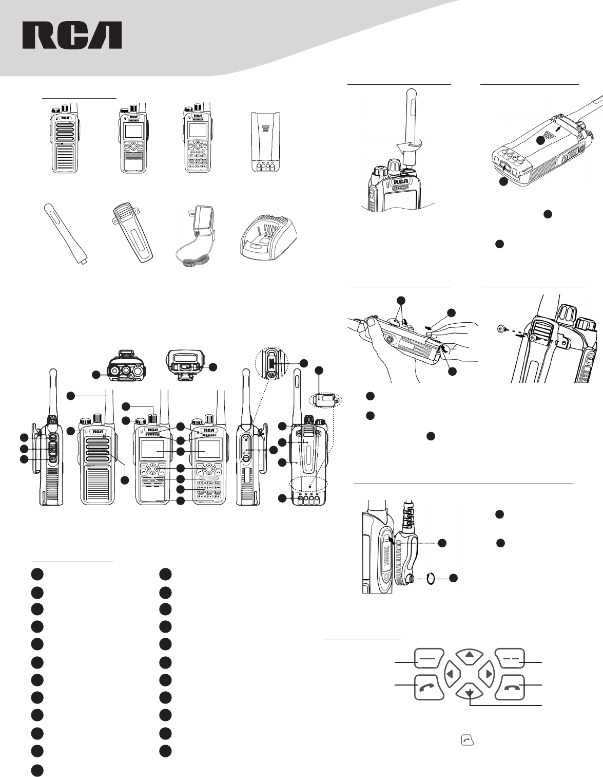 • When worn on the body, always place the radio in a RCA’s approved clip