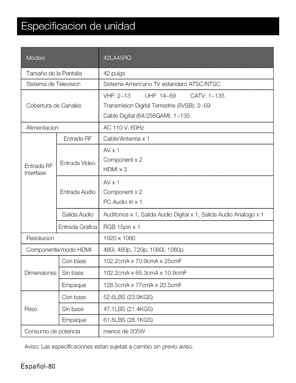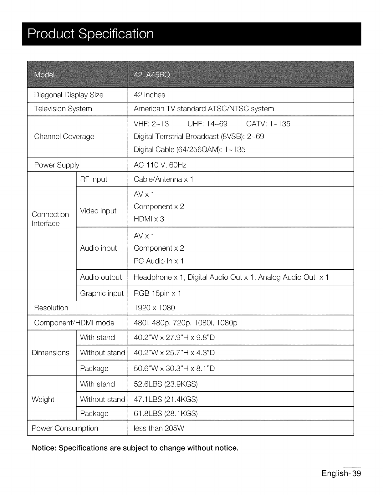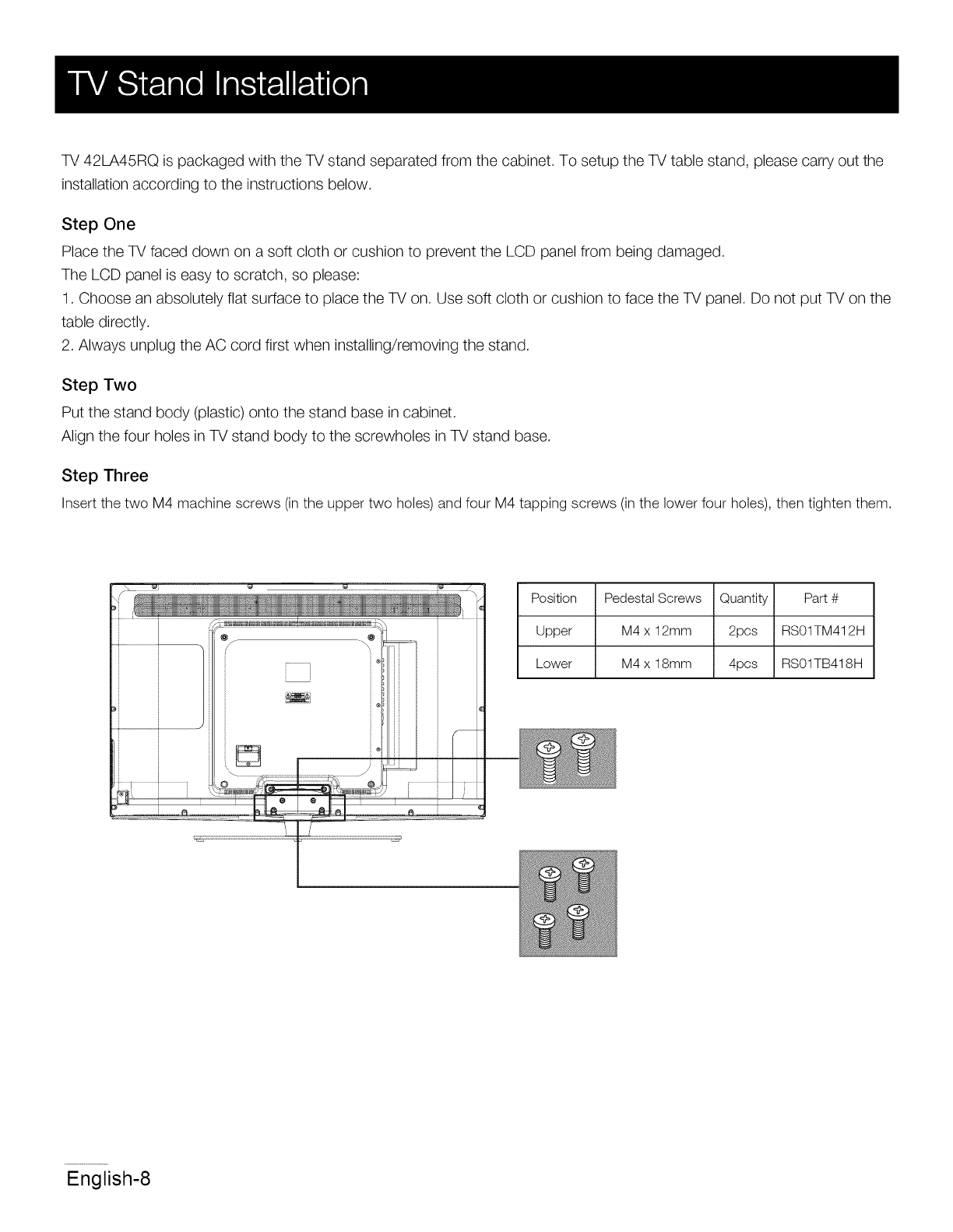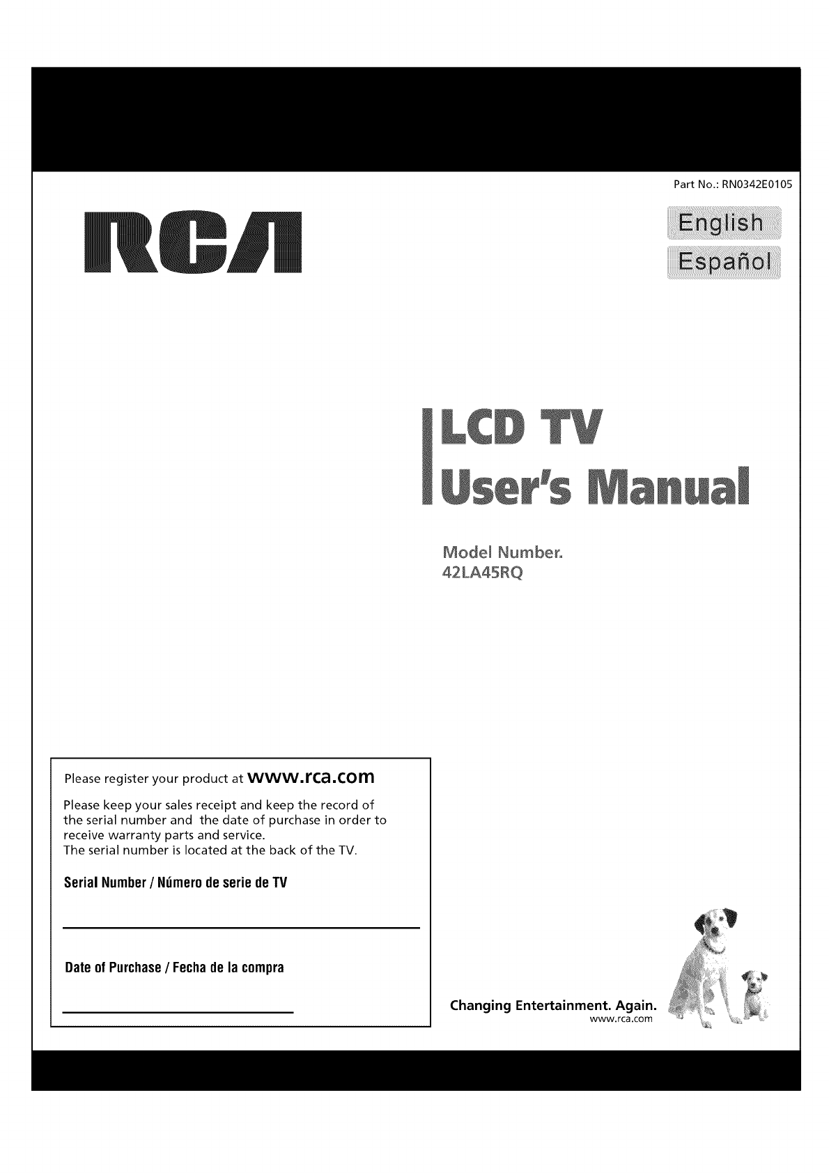 User Manual: RCA 42LA45RQ 42LA45RQ RCA LCD TELEVISION - Manuals and Guides View the owners manual for your RCA LCD TELEVISION #42LA45RQ. Home:Electronics Parts:Rca Parts:Rca LCD TELEVISION Manual