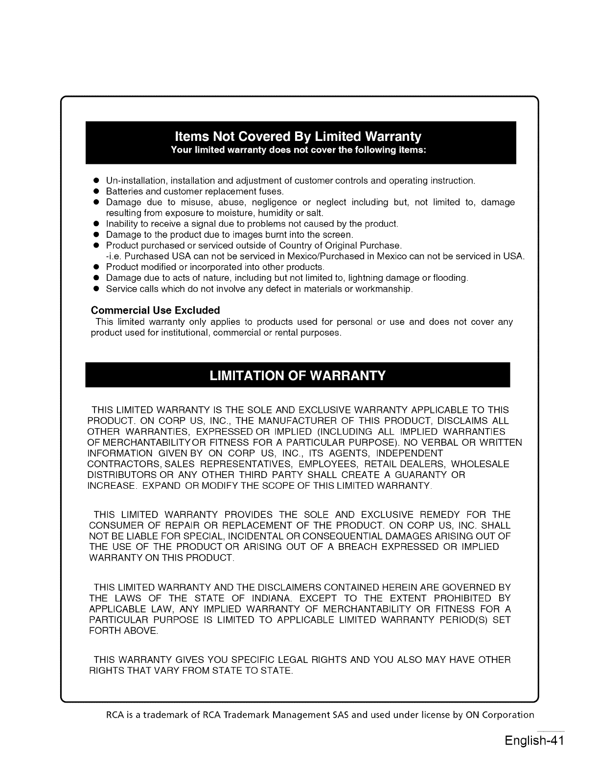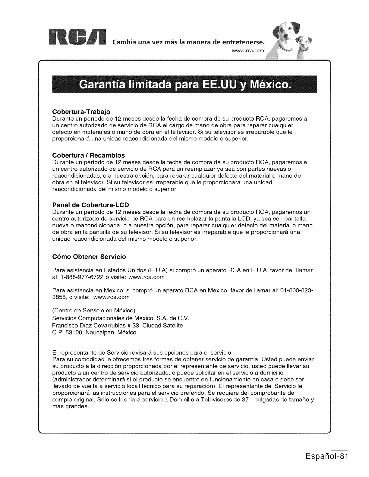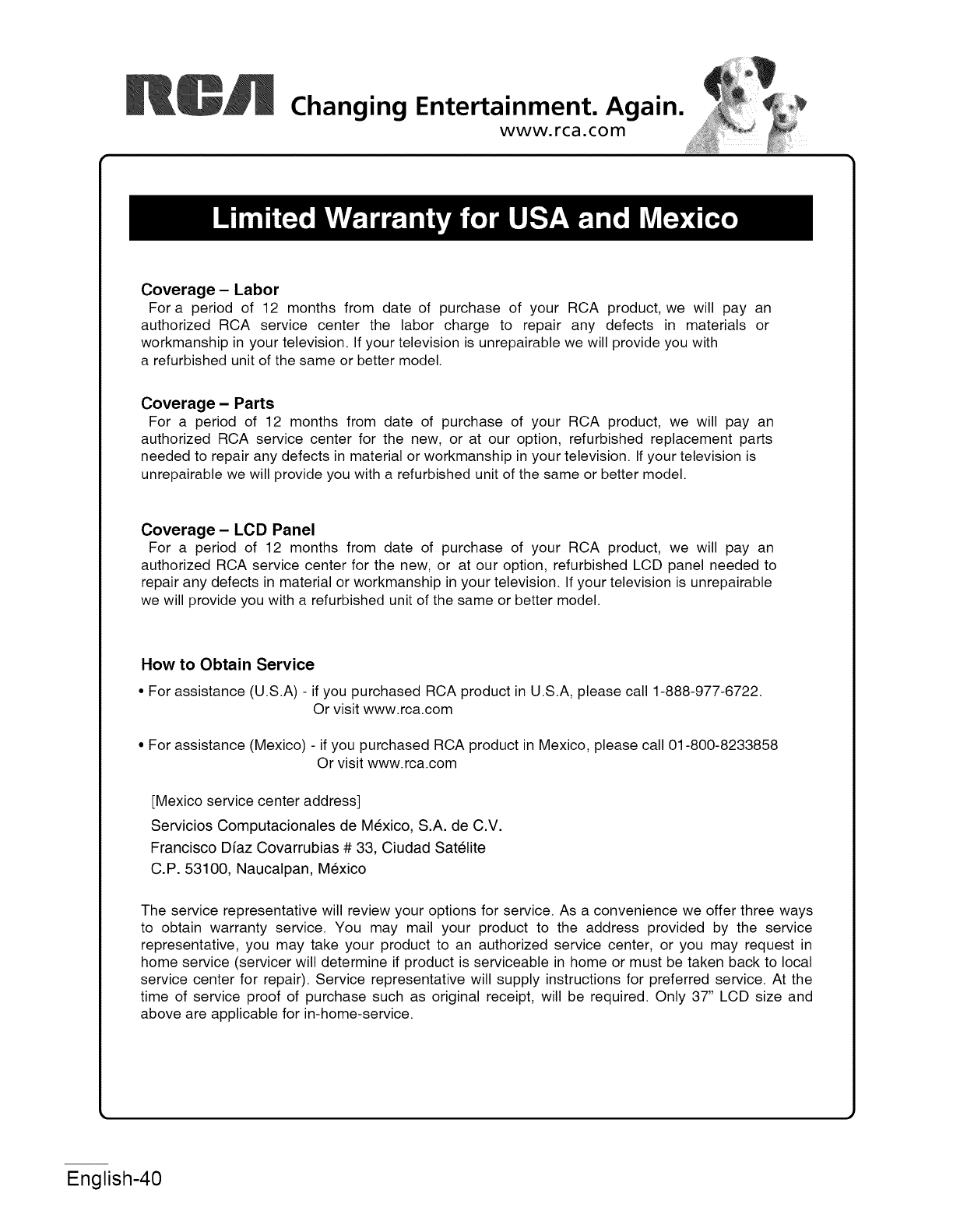RCA 42LA45RQ 1012196L User Manual LCD TELEVISION Manuals And Guides