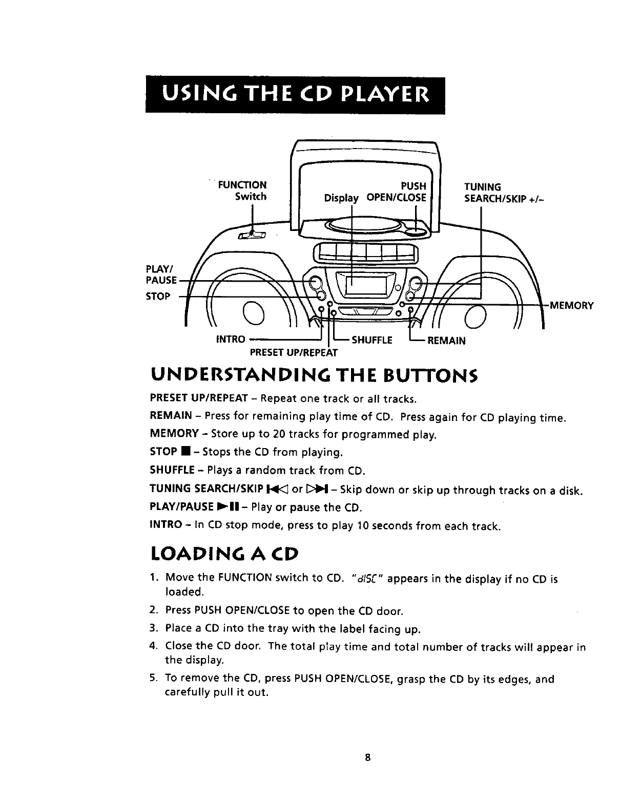 This Compact Disc Player uses a laser to rLrad themuslc on the disc. The laser mechanism