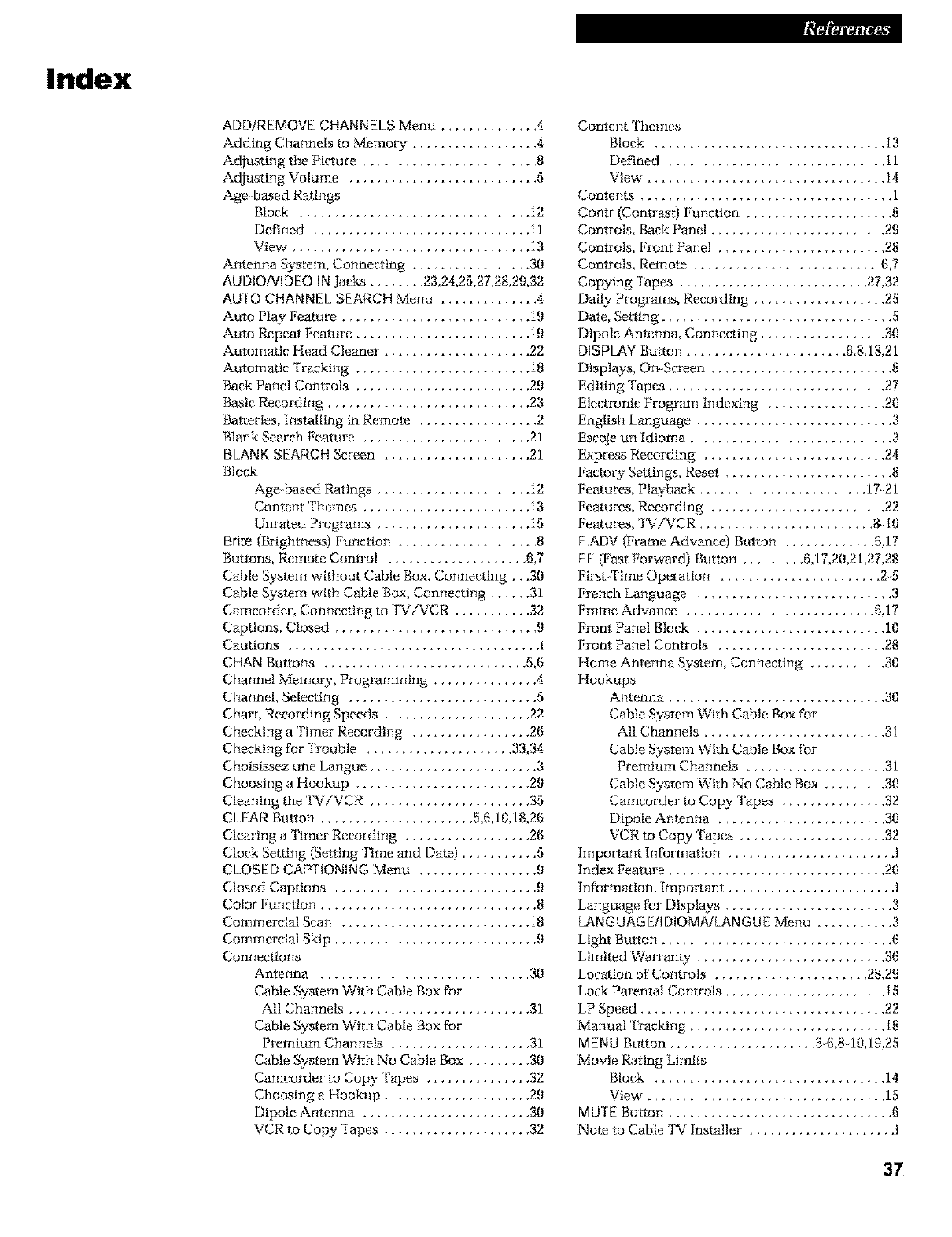 VIDEO/AUD!O INJacks .......... 24,25,27,28,29,30