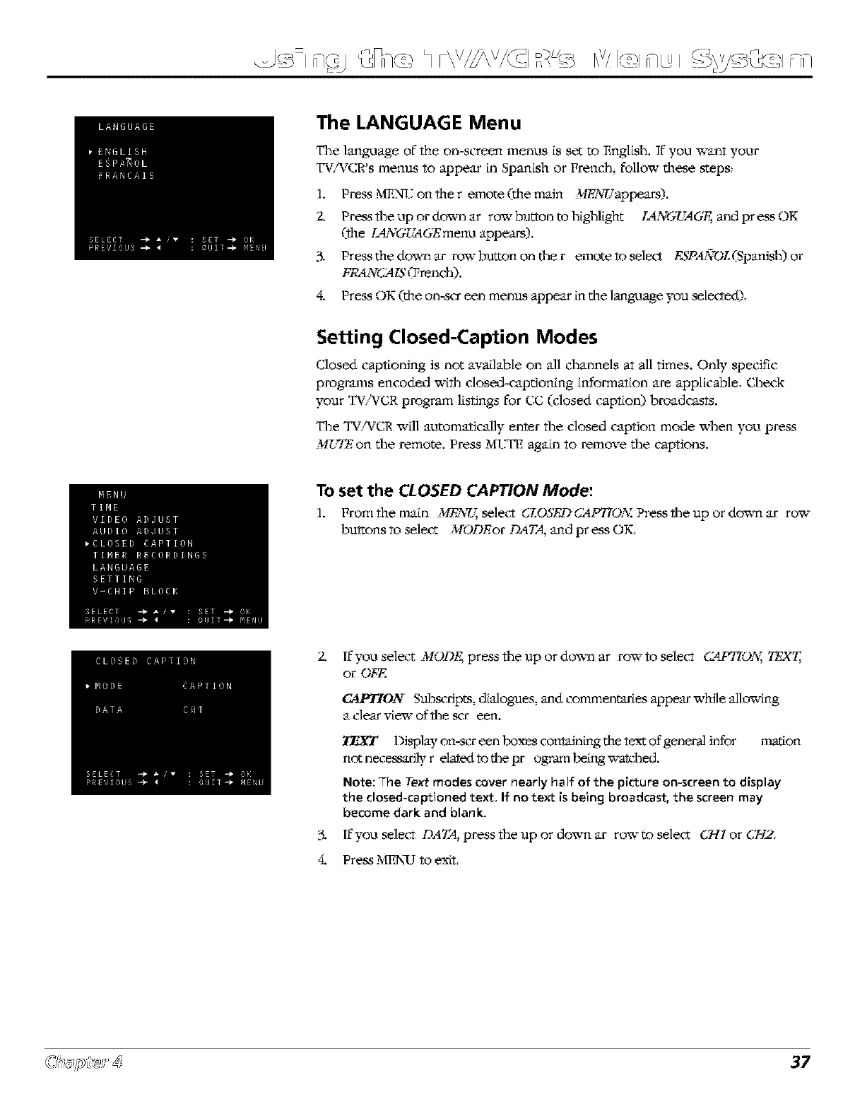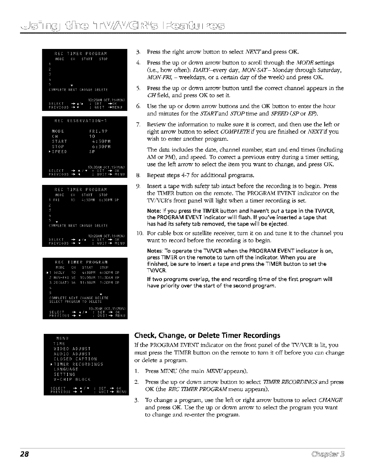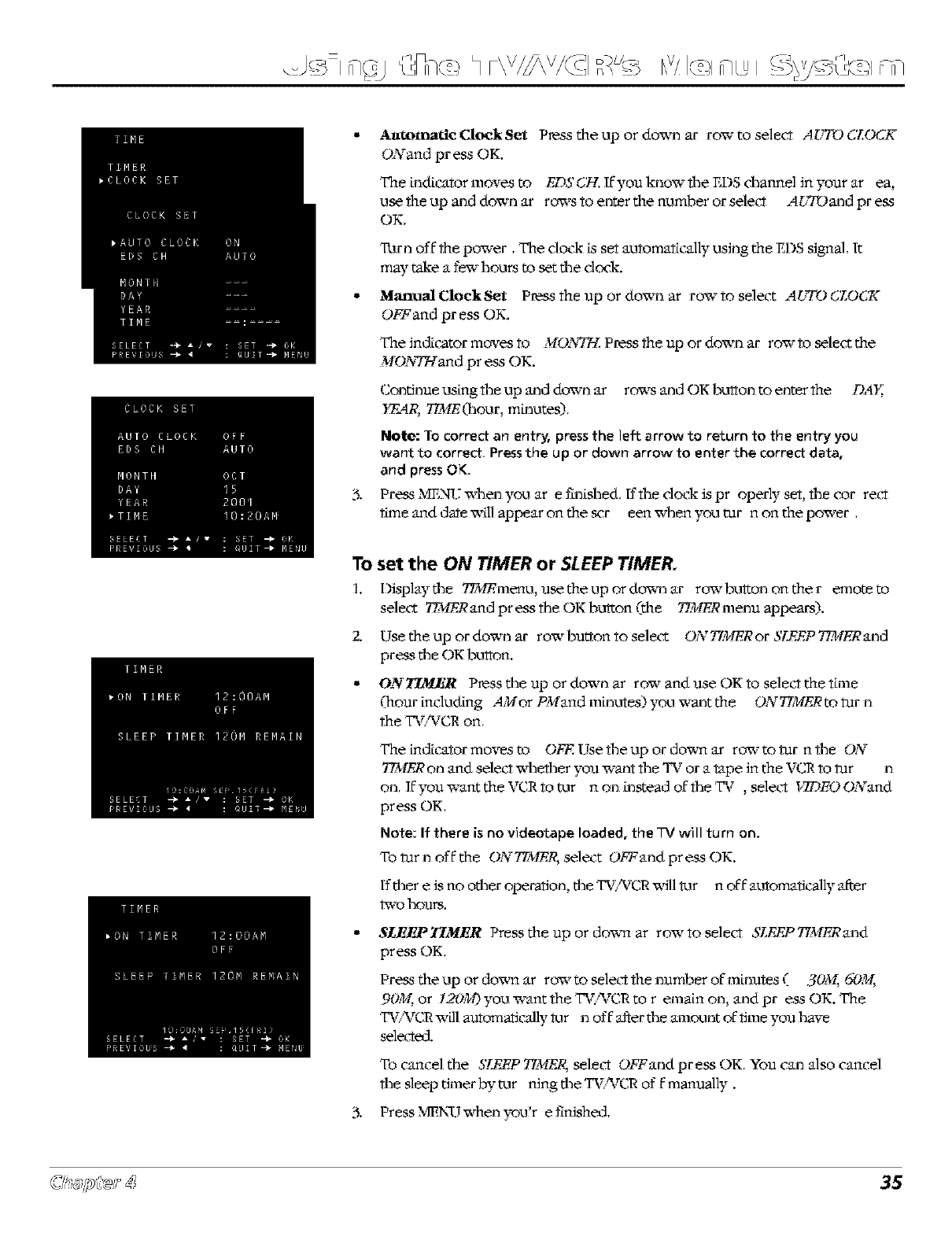 •Set up tlle 7%7 GI37DELL'_S and MR'4.4 menus in the T_tVCR's main MF_7