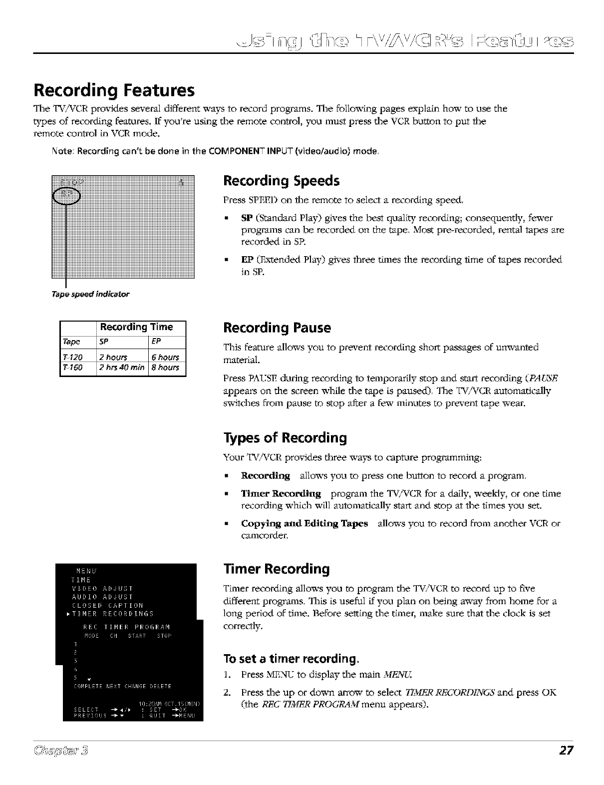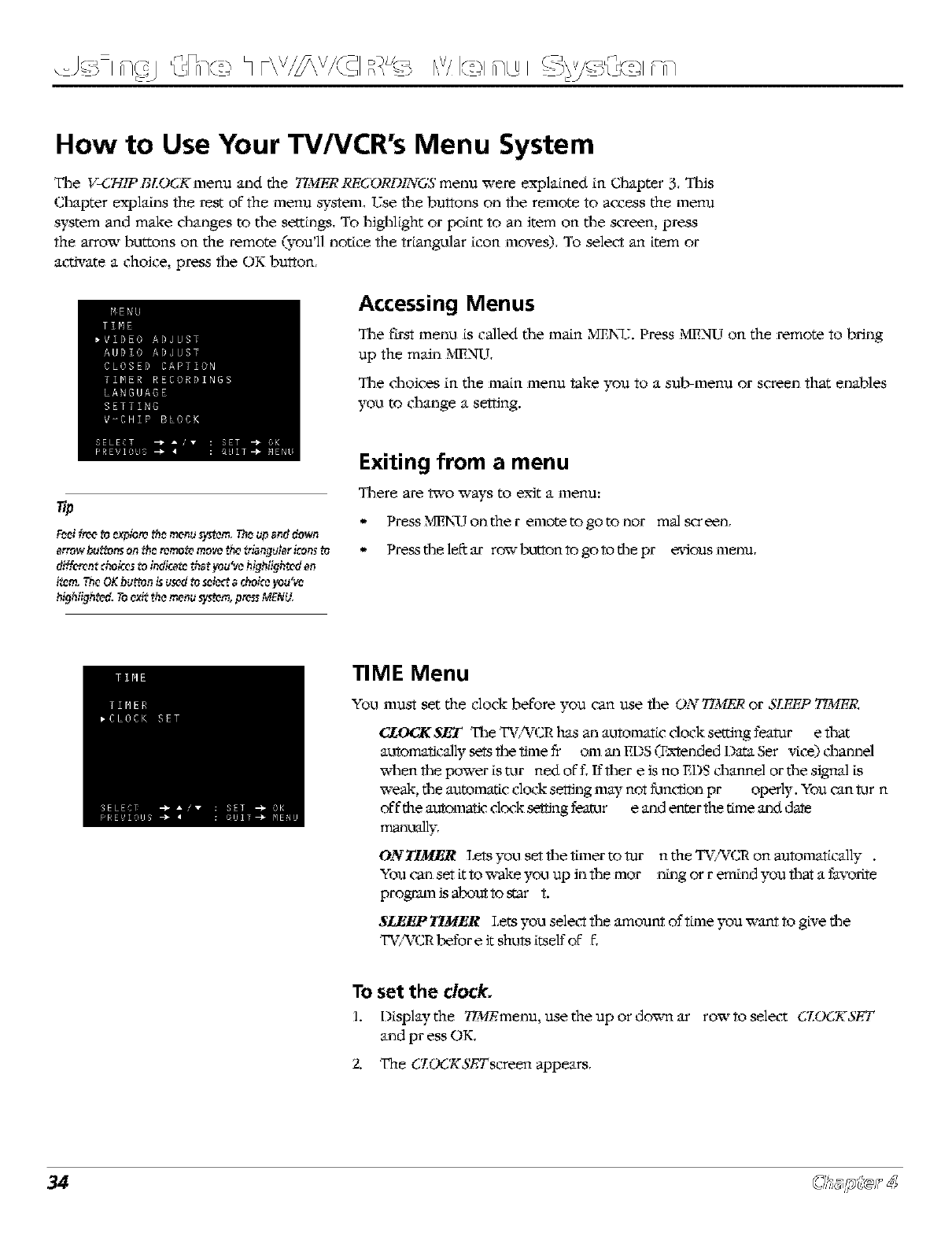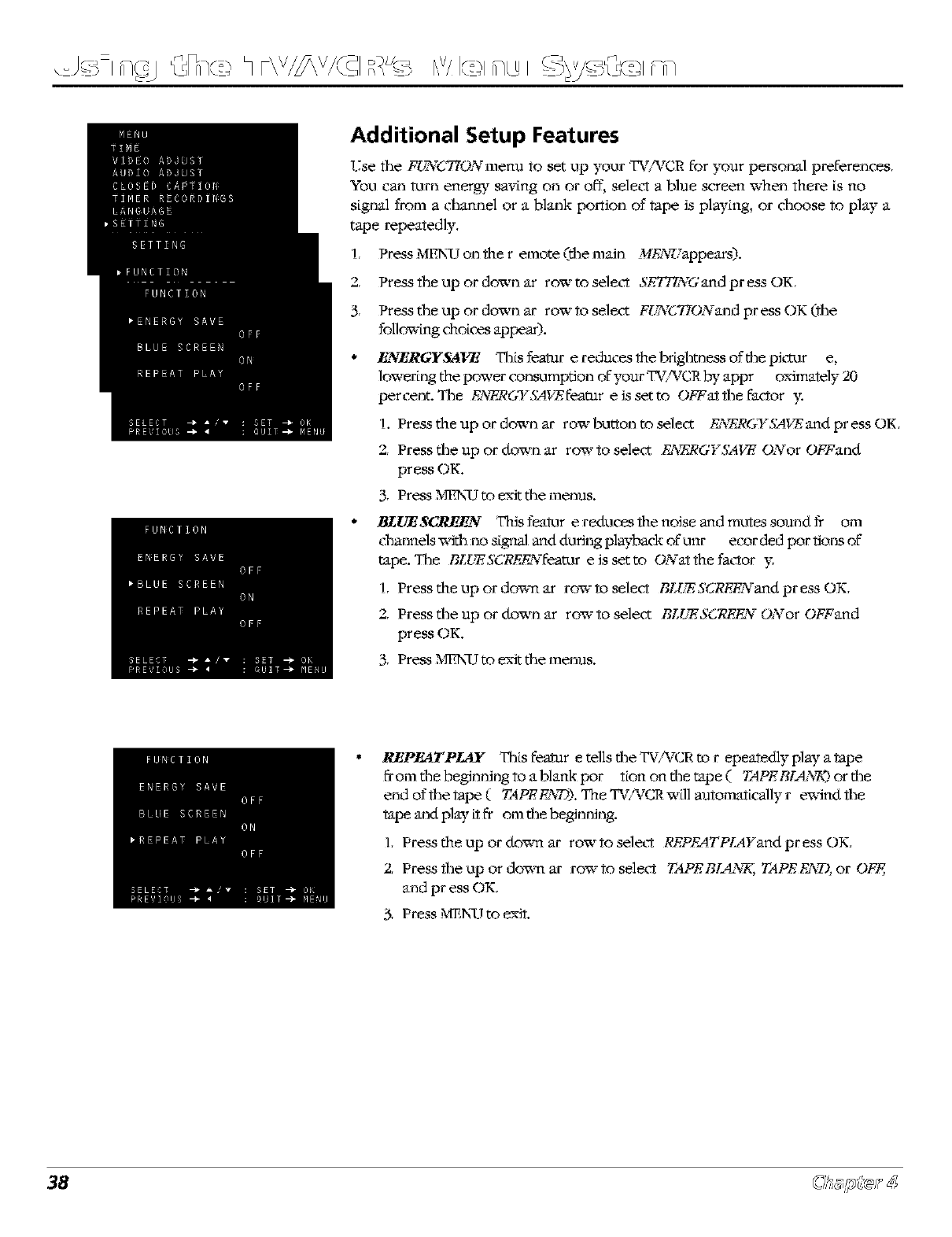 •Set up tlle 7%7 GI37DELL'_S and MR'4.4 menus in the T_tVCR's main MF_7