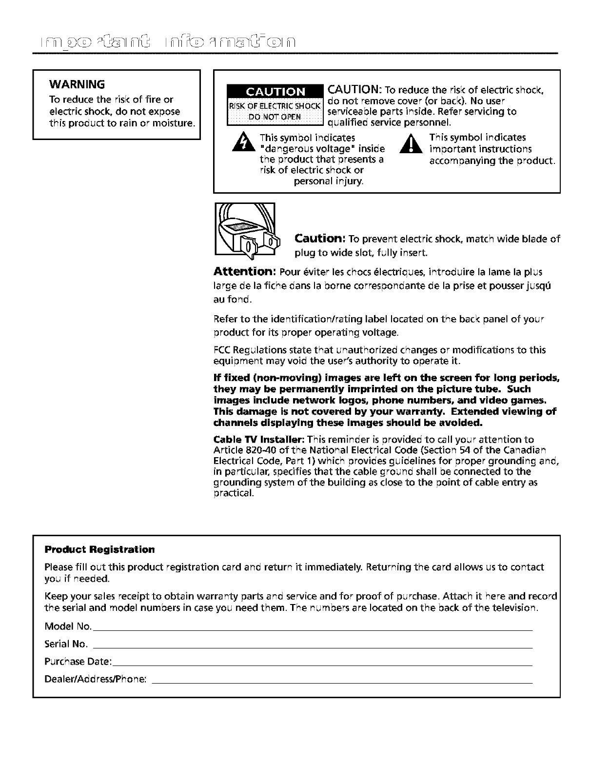 Please fill out this product registration card and return it immediately. Returning the card allows us to contact