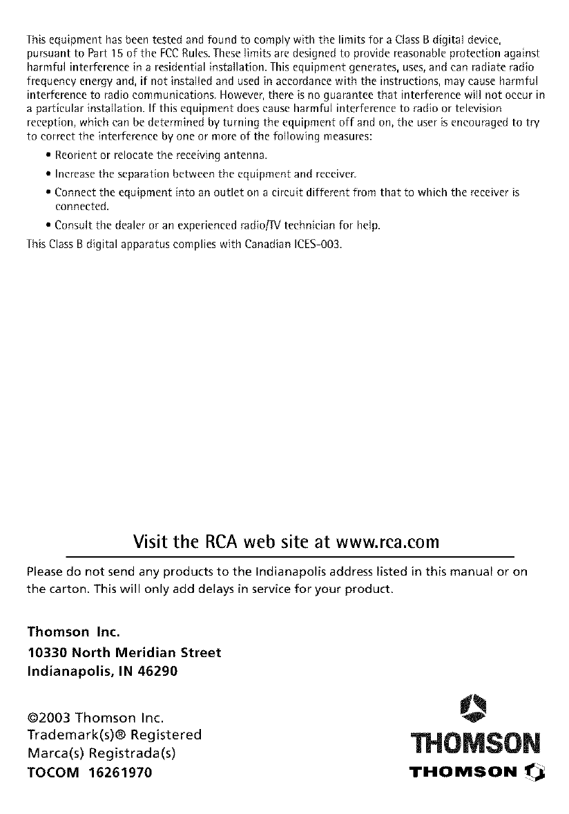 customers: Your RCA Consumer Electronics product may also be registered at www.rca.com/