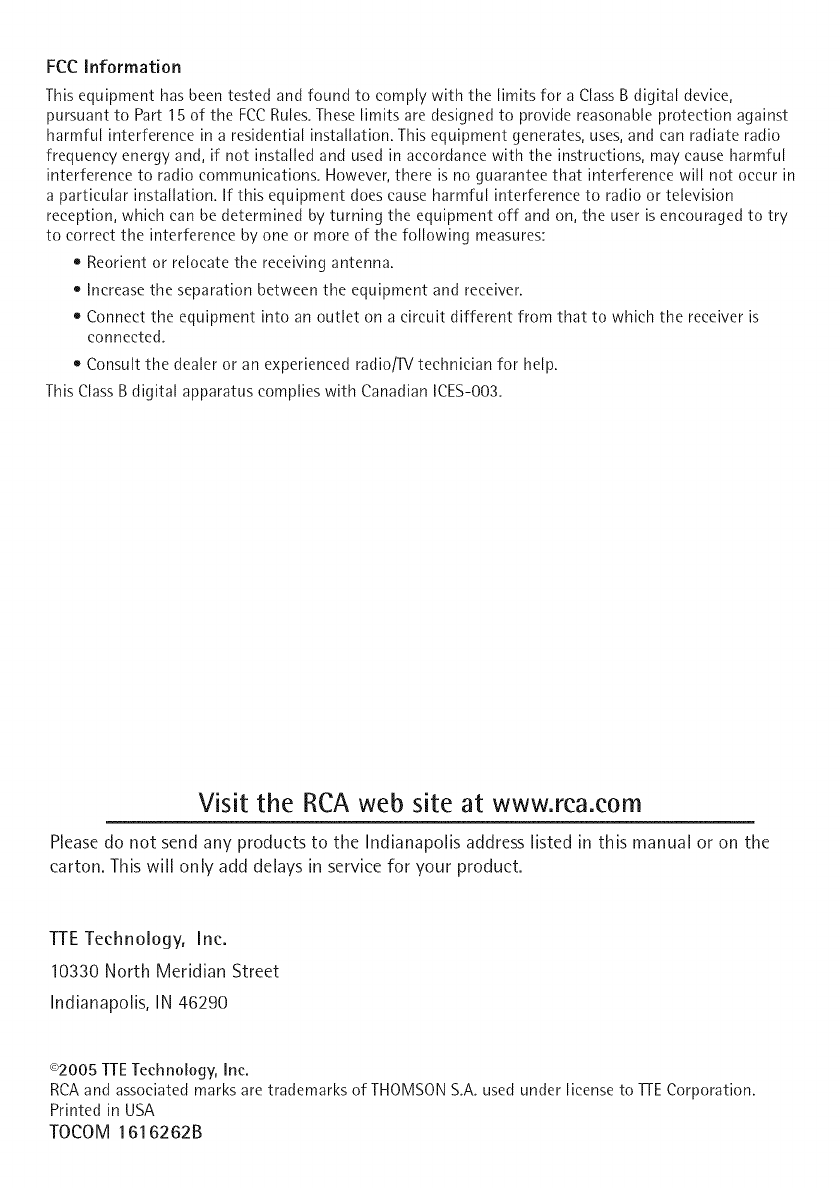 customers: Your RCA Consumer Electronics product may also be registered at www.rca.com/