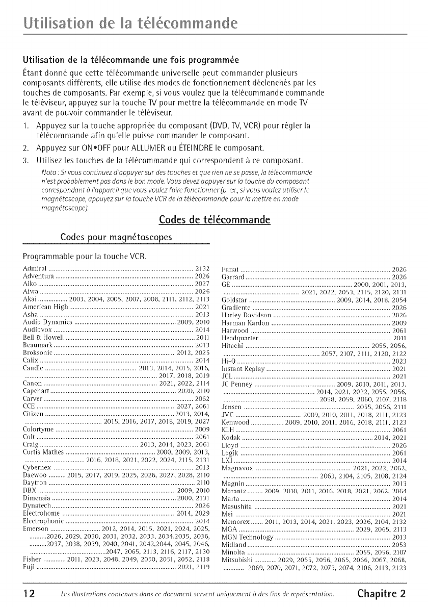 Remote Control Codes ................................................................................................. 12