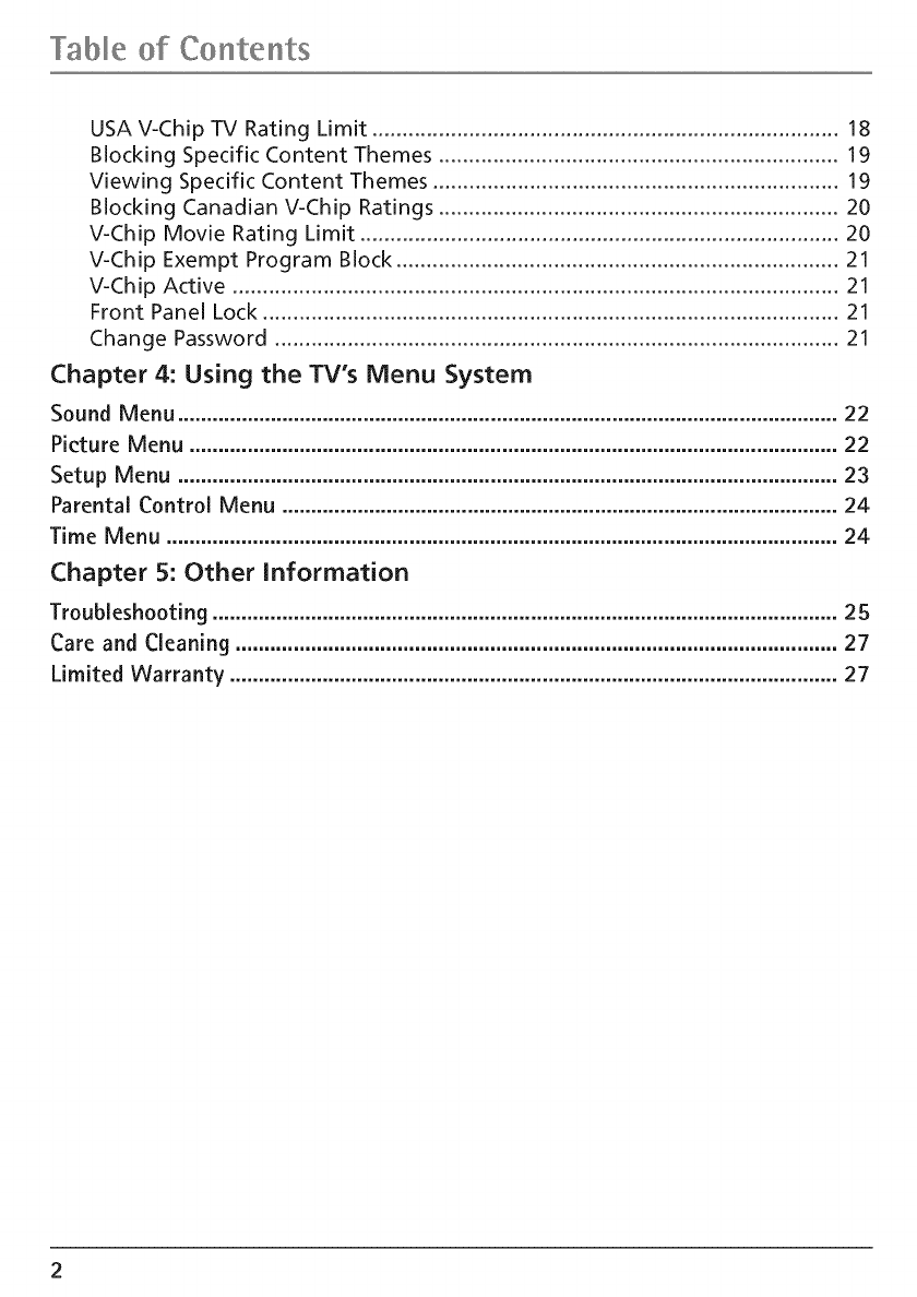 Parental Controls and V=Chip ..................................................................................... 15