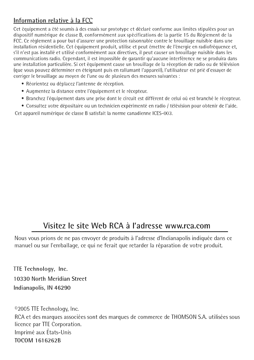 RCA et des marques associ_es sont des marques de commerce de THOMSON S.A. utilis_es sous
