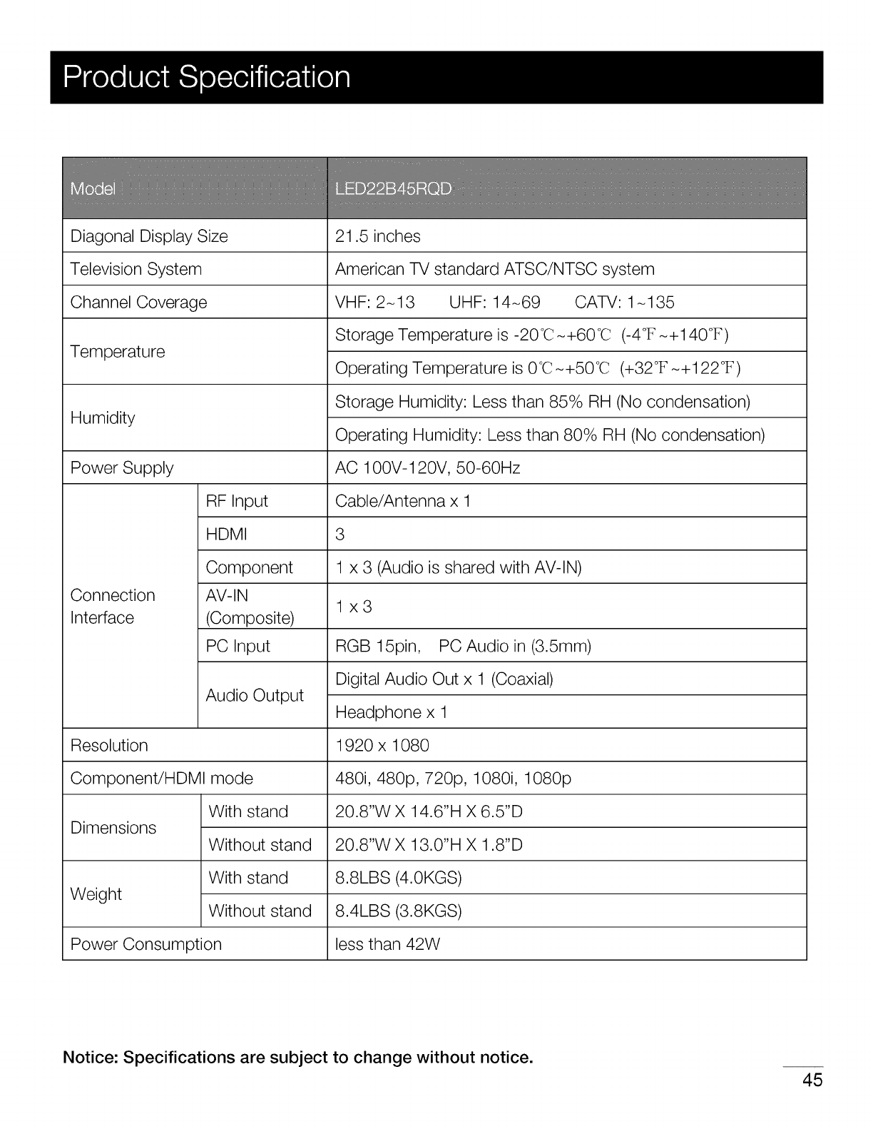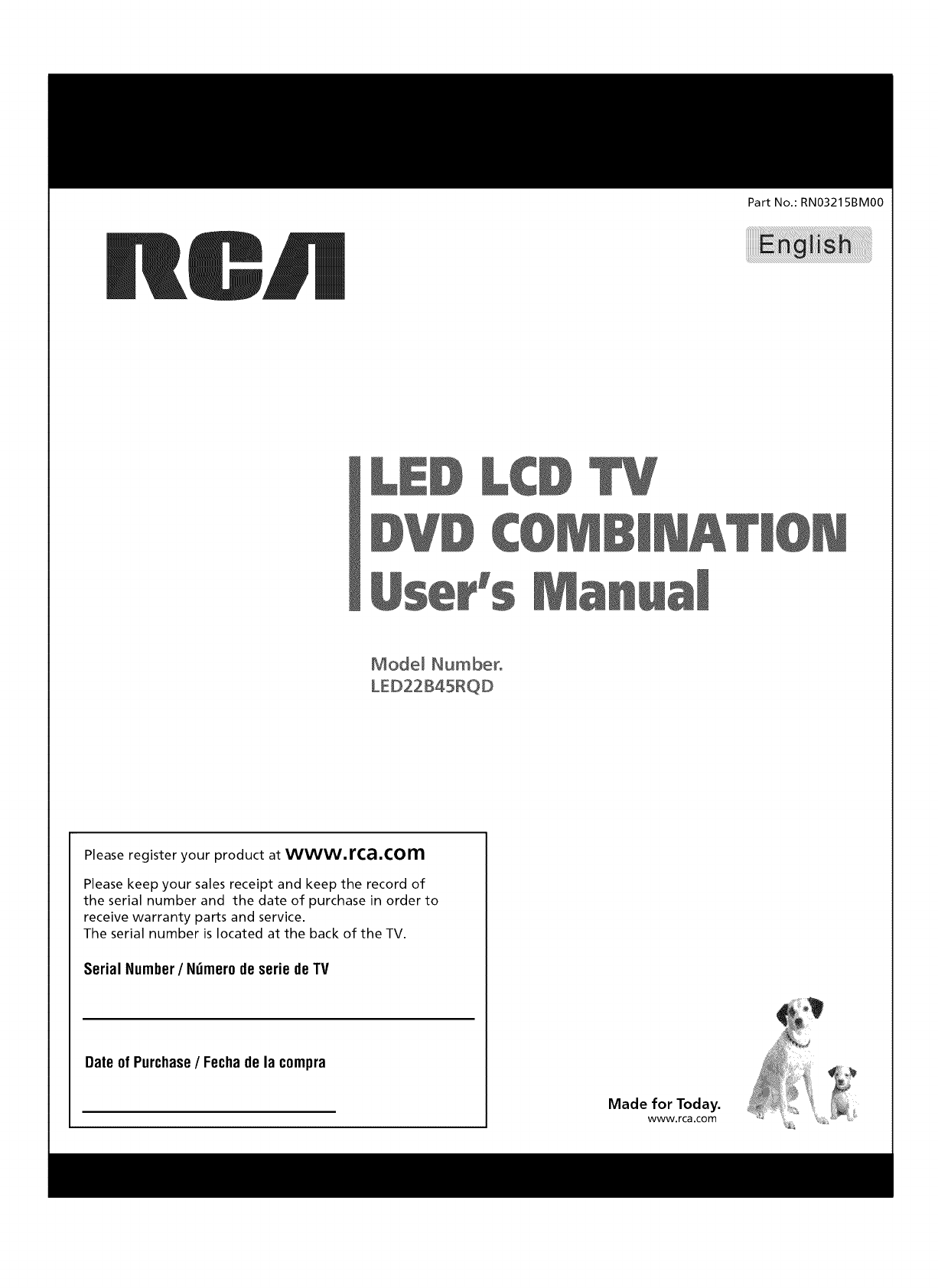 User Manual: RCA LED22B45RQD LED22B45RQD RCA LED TELEVISION/DVD - Manuals and Guides View the owners manual for your RCA LED TELEVISION/DVD #LED22B45RQD. Home:Electronics Parts:Rca Parts:Rca LED TELEVISION/DVD Manual