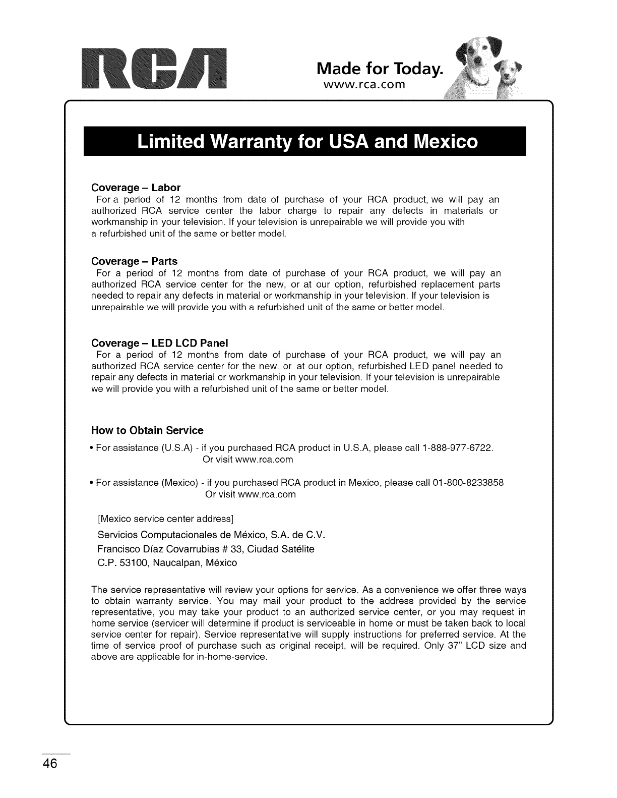 RCA LED22B45RQD 1208232L User Manual LED TELEVISION/DVD Manuals And Guides