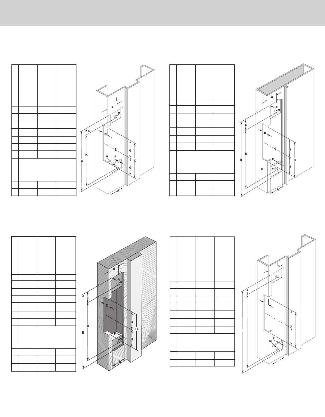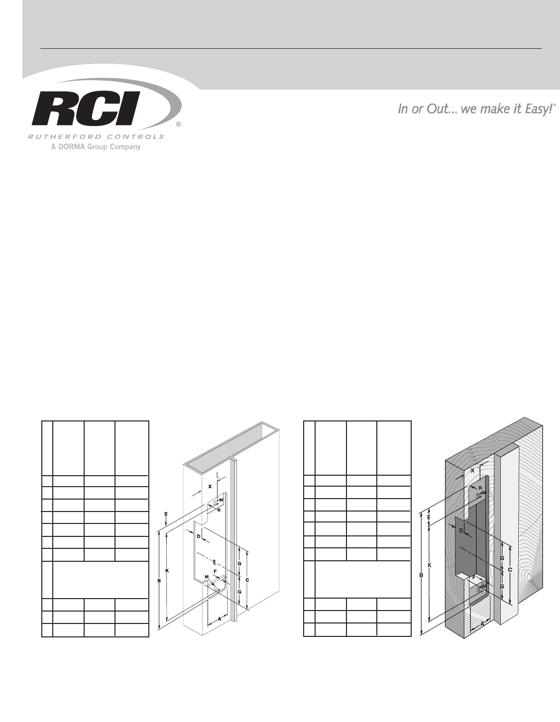 † For wood frame door installations, substitute #12 wood screws for dimension M.