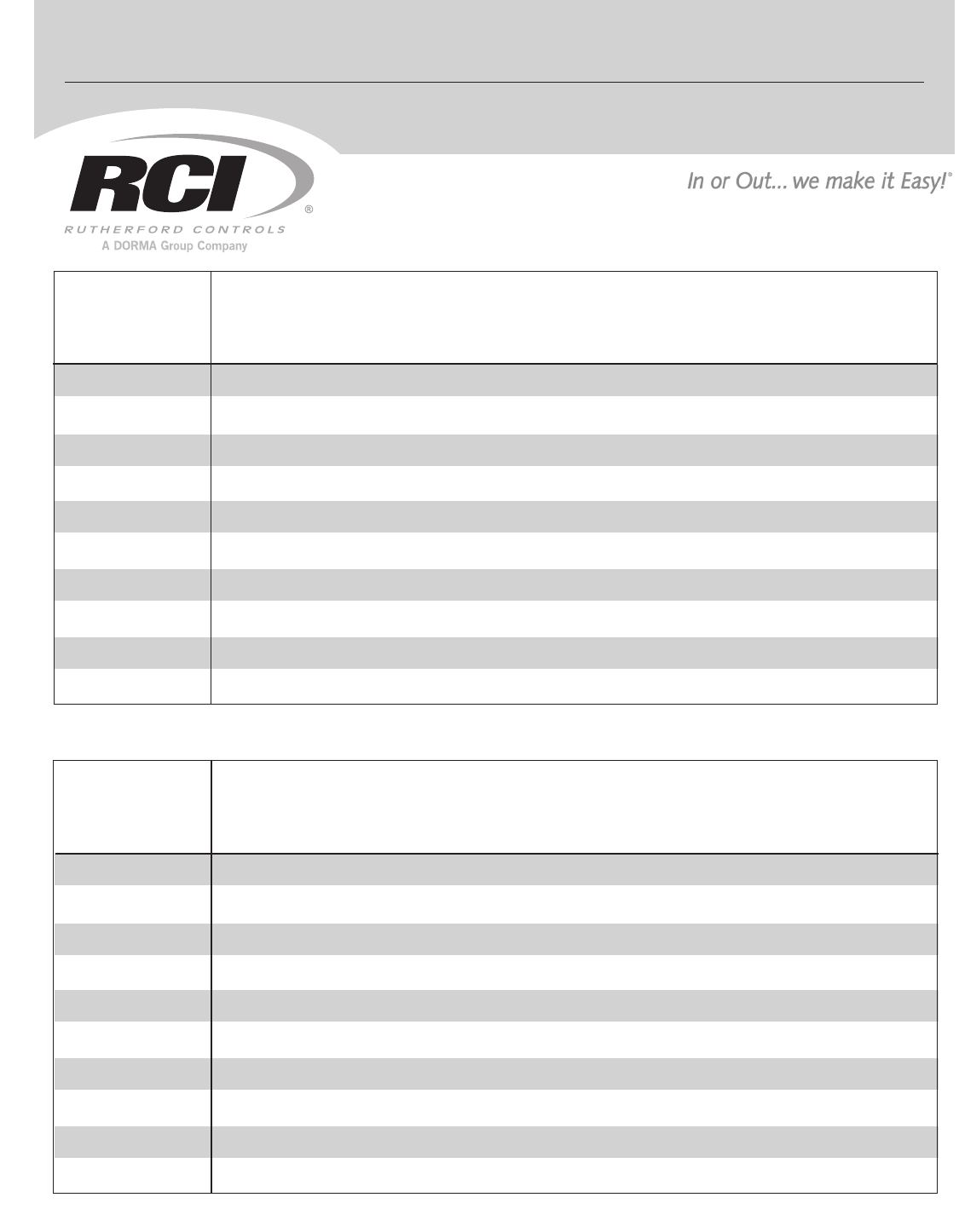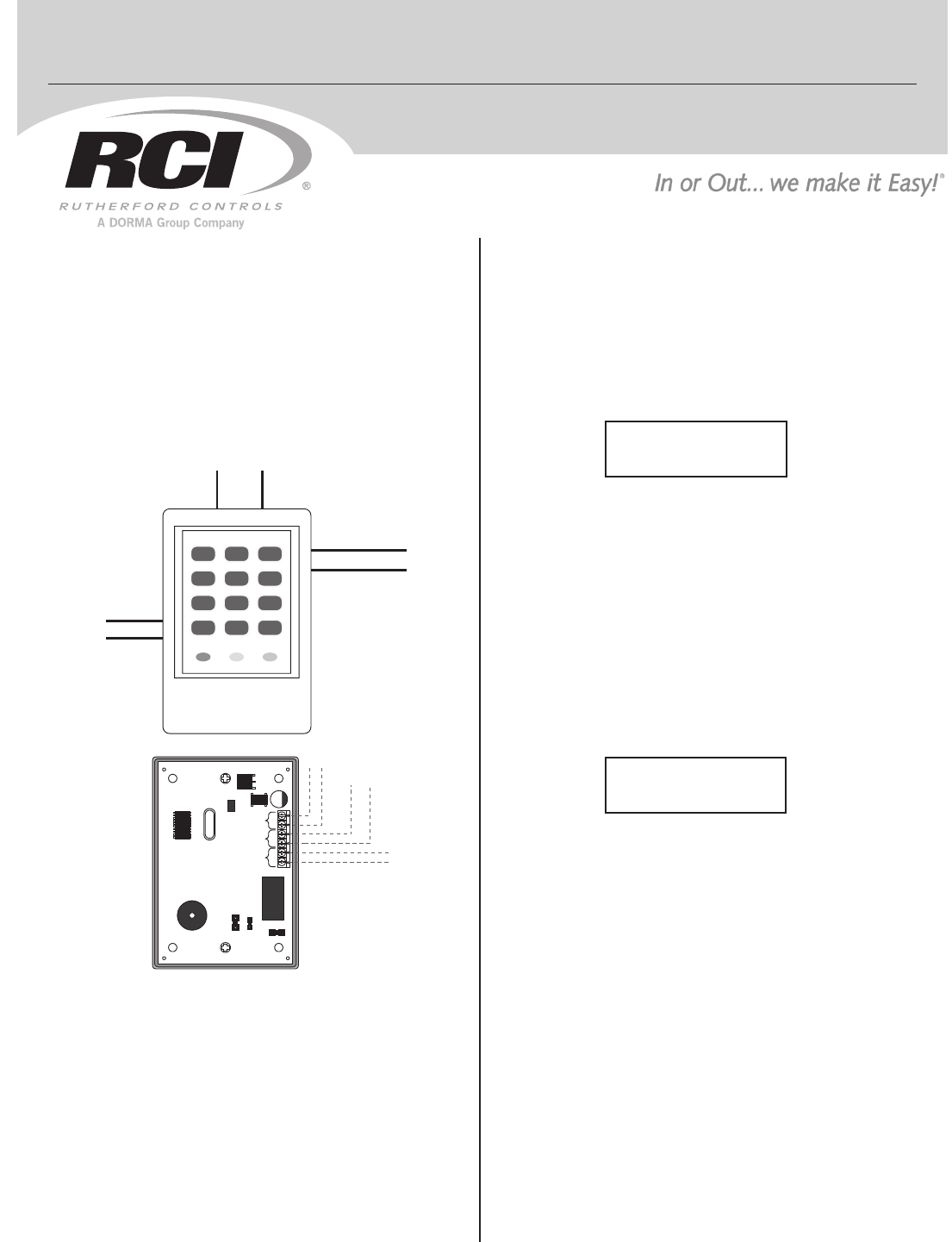 User Manual: RCI 9325 Stand Alone Keypads Installation Instructions Installation Instructions