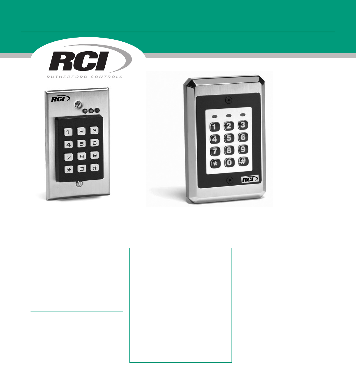 User Manual: RCI 9212 Stand Alone Keypads Product Sheet Product Sheet