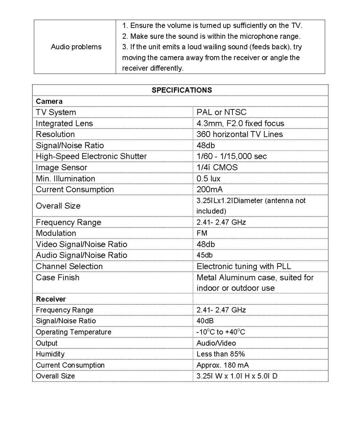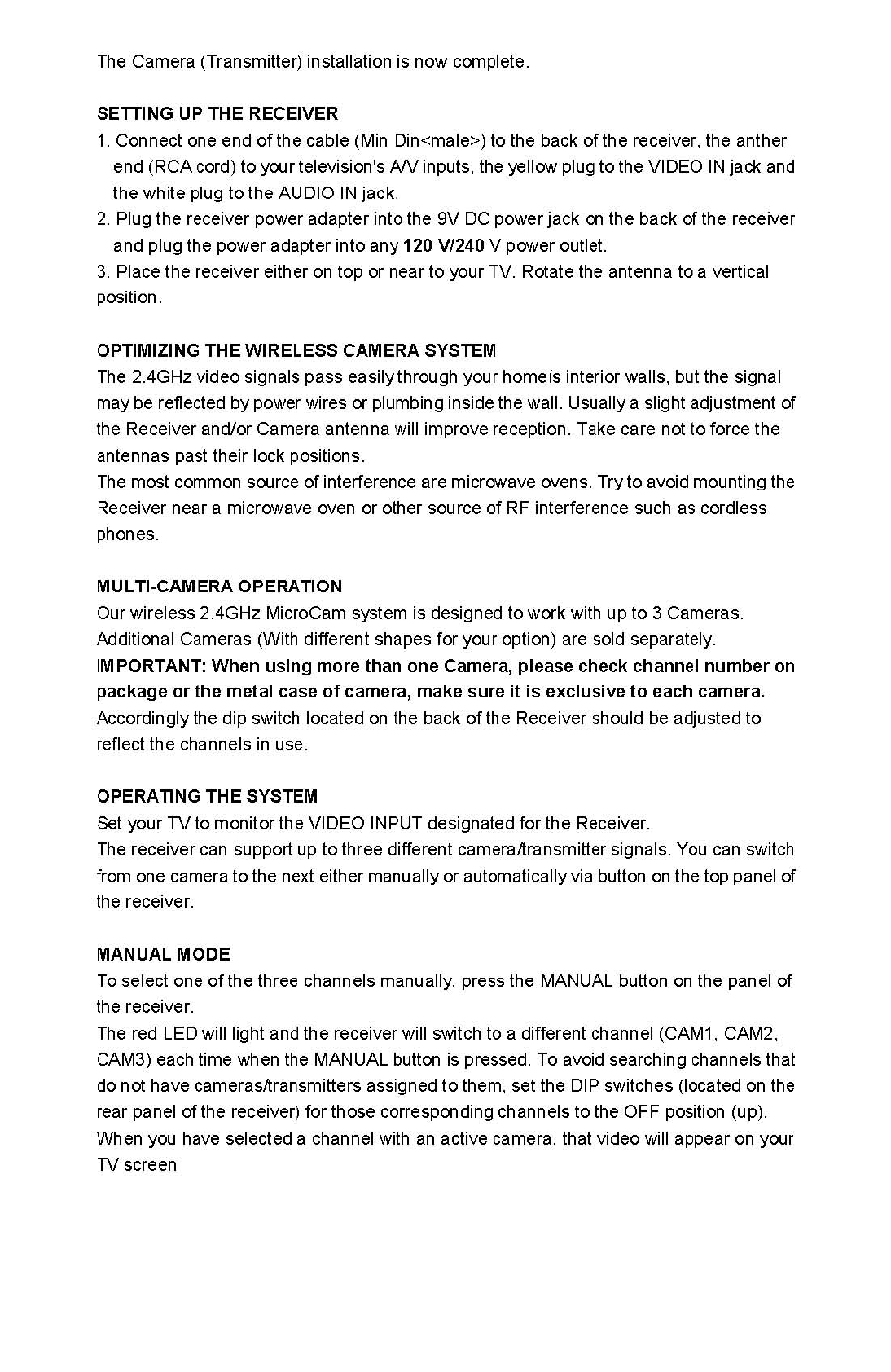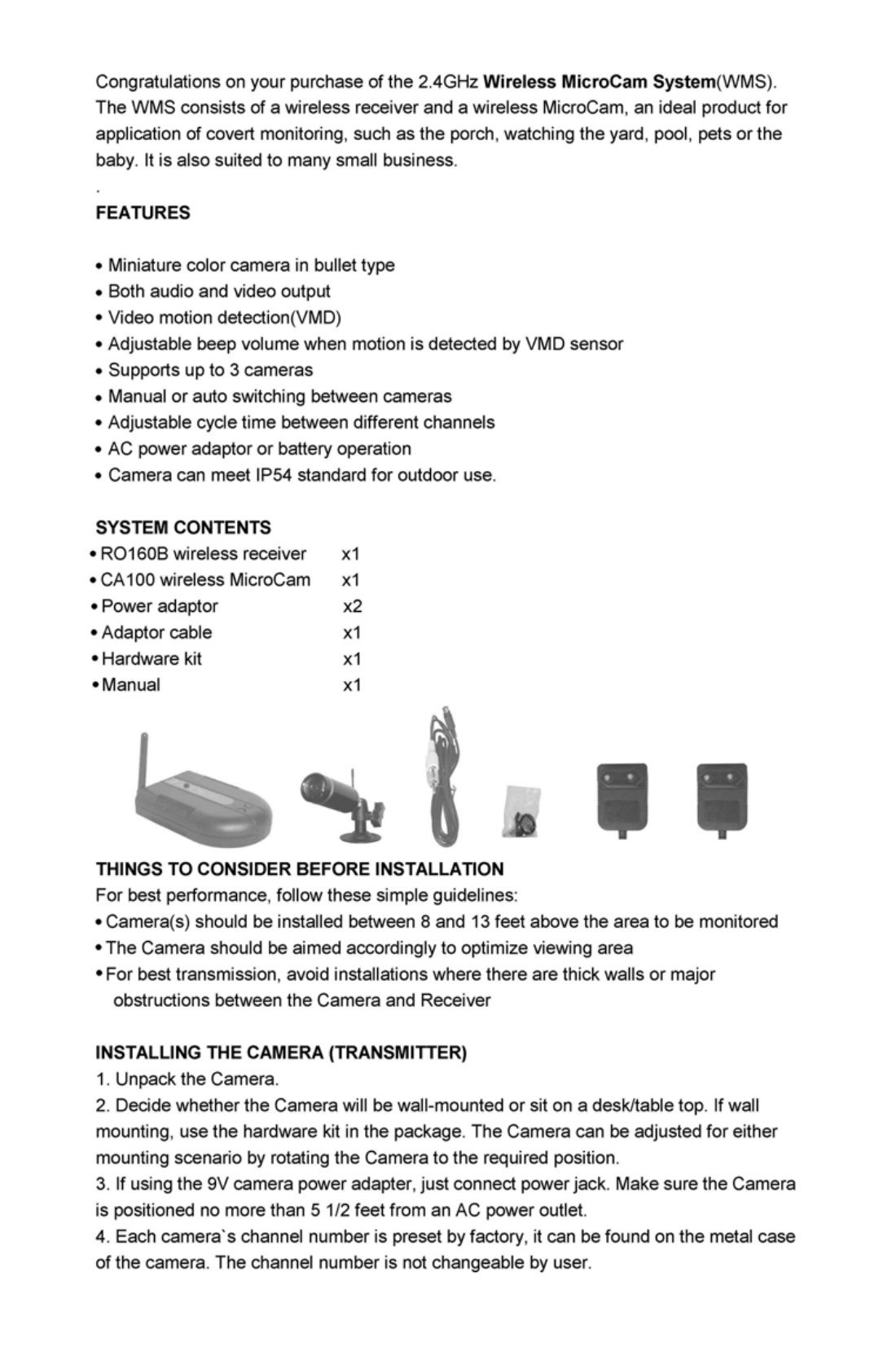 RDI Technology CA100 2.4GHz WIRELESS COLOR BULLET MICROCAM User Manual