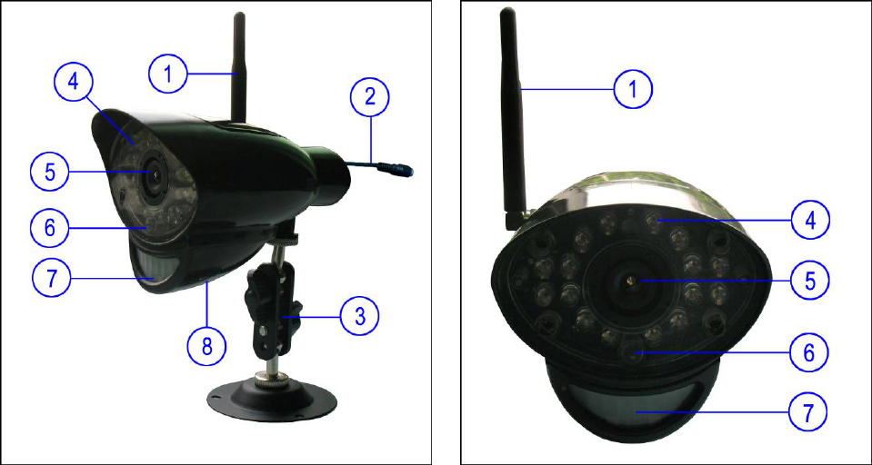 1. Camera Antenna – Sends & receives signals to or from the receiver.