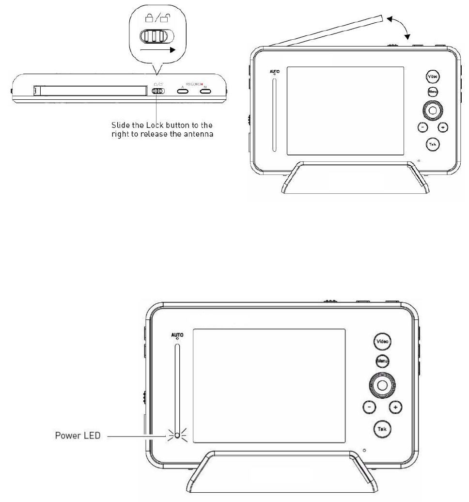 (ensure the video monitor firmly rests on the cradle). The video monitor’s charging LED indicator glows