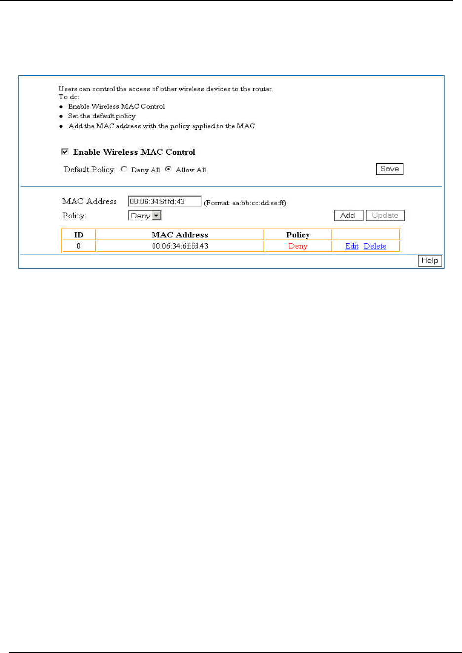 WIRELESS > MAC ACCESS CONTROL...............................................................22