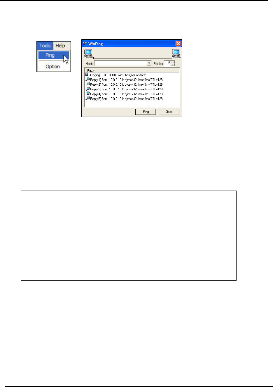 The QS Utility can also be used to ping a selected Device to check the connectivity.