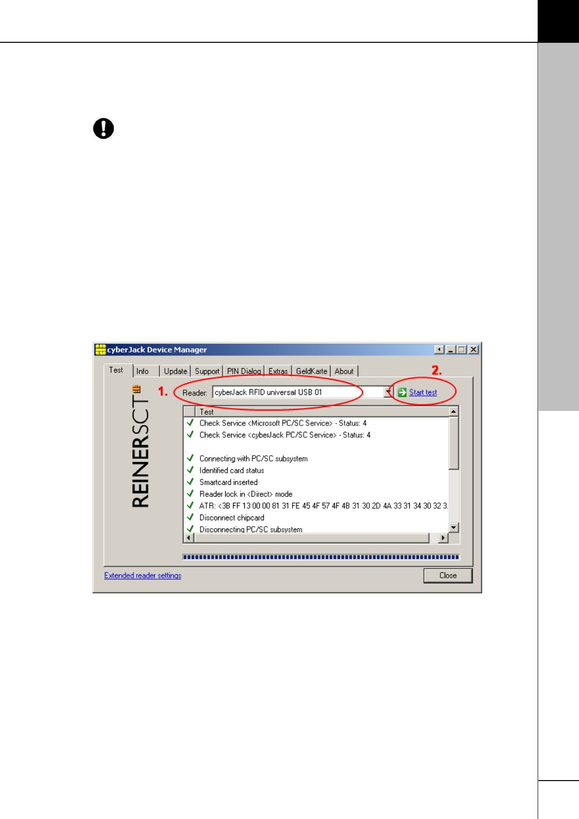 After the restart please start the cyberJack Device Manager program, function test in the Start menu