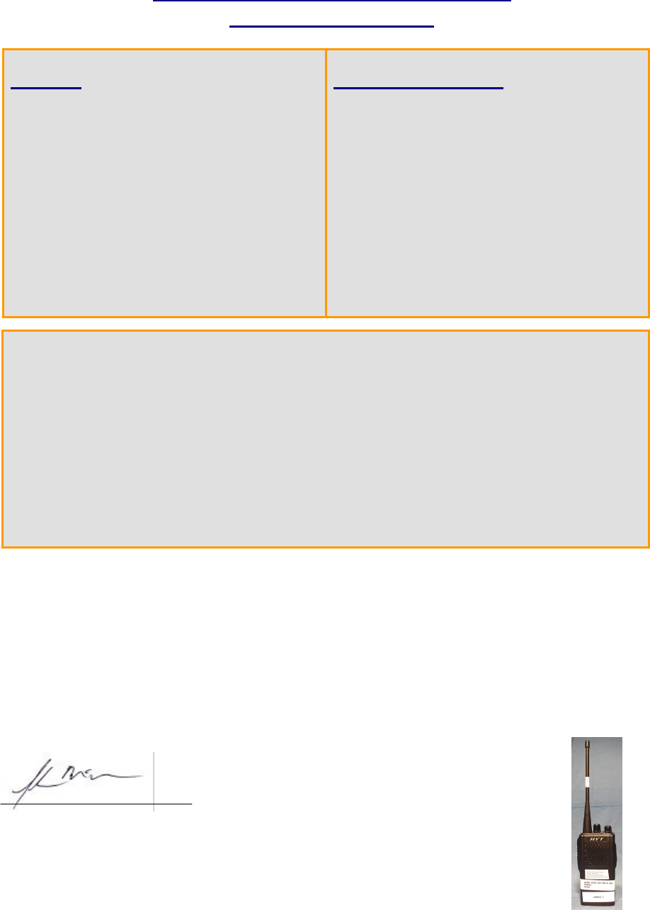 EUT Type:   Portable VHF PTT Radio Transceiver