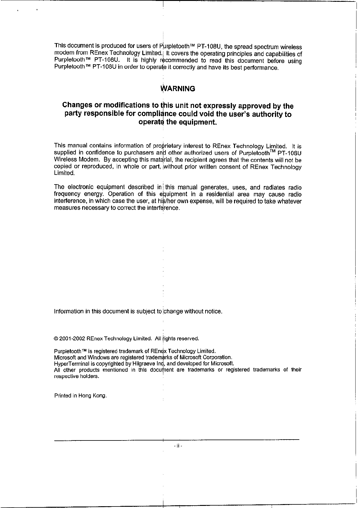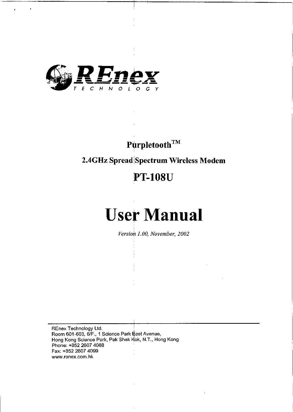 REnex Technology PT108-0001001 2442MHz Wireless Modem User Manual
