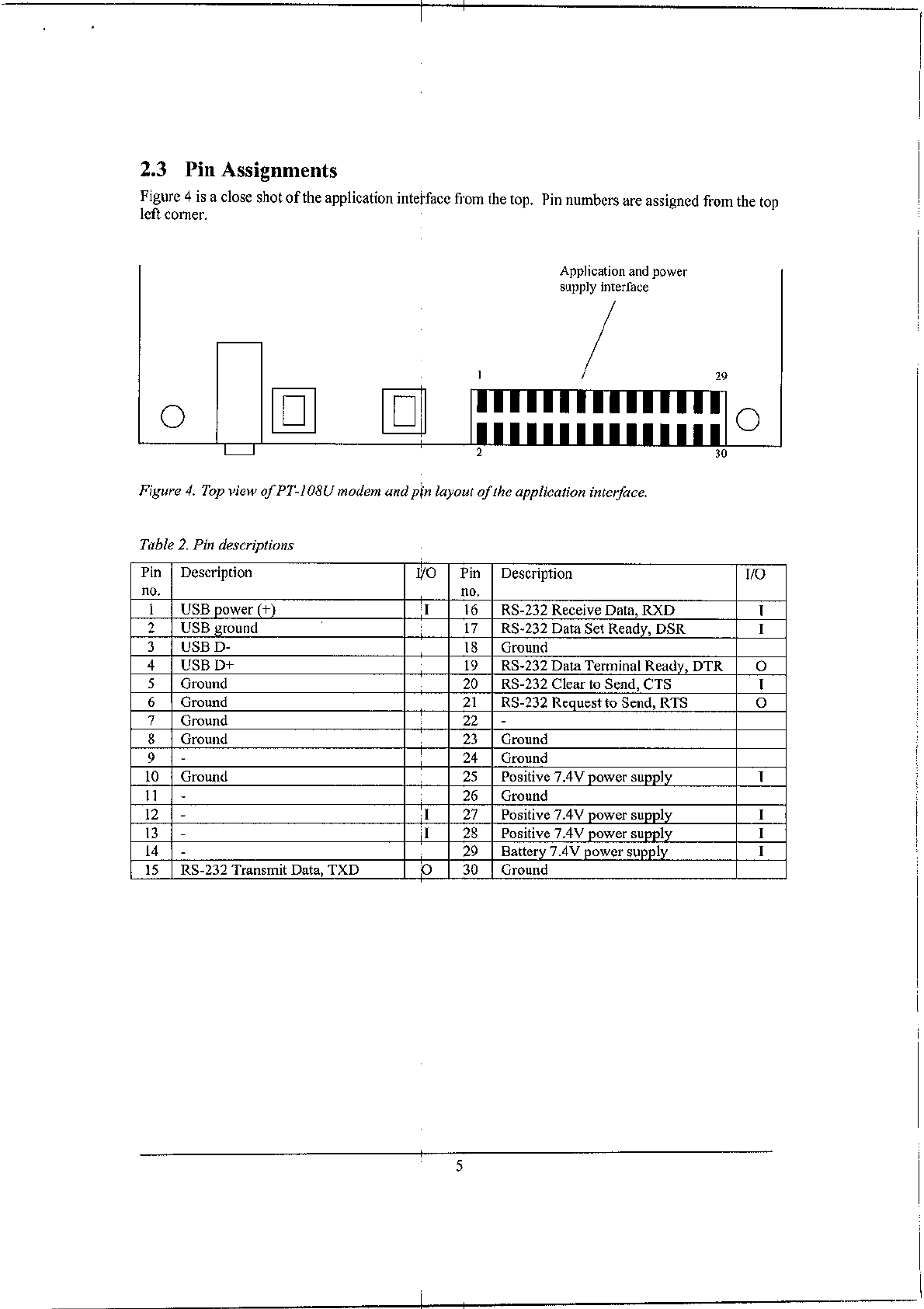 The pin definitions of the application interface are listed in Table 2. Users may connect the RS-232