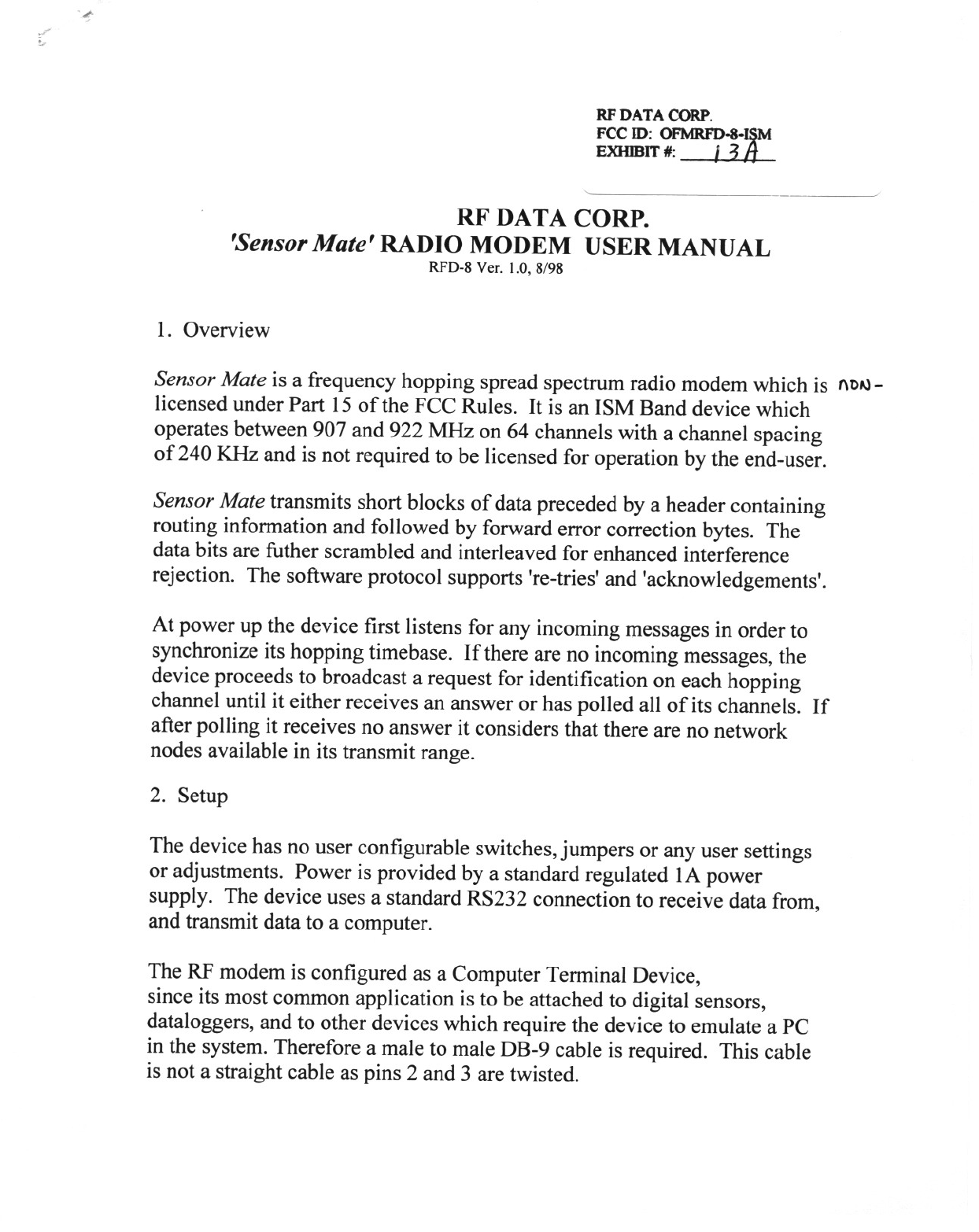 RF Data RFD-8-ISM User Manual USERS MANUAL