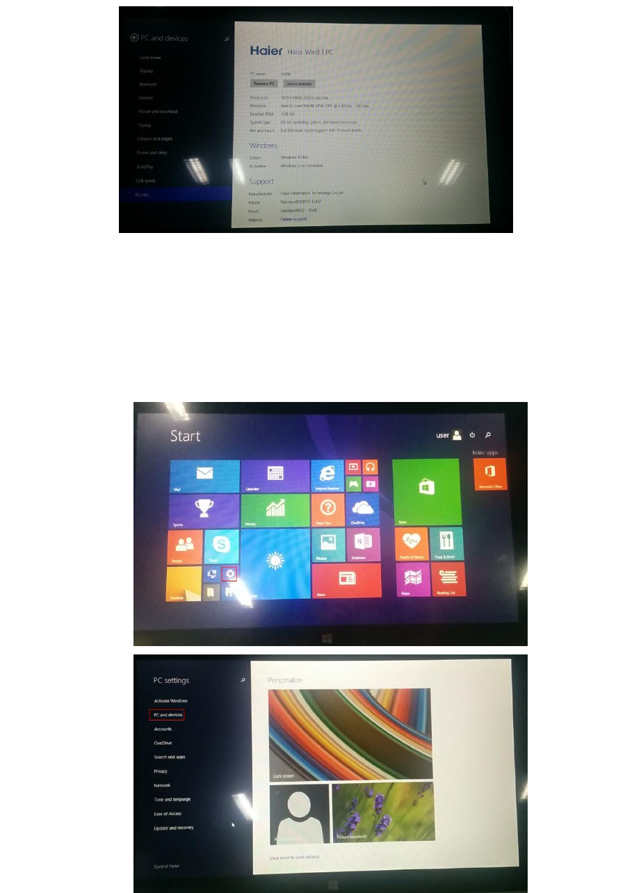 1、Setting the tablet,enter and select“PC setting”---“PC and devices”