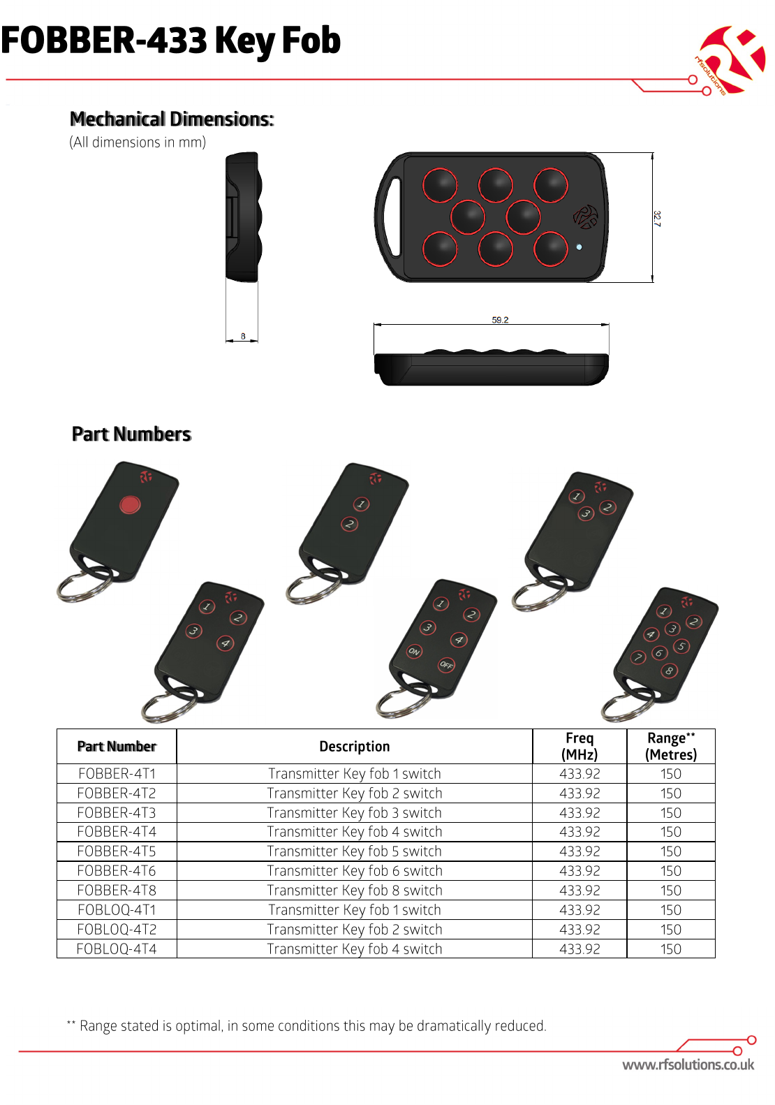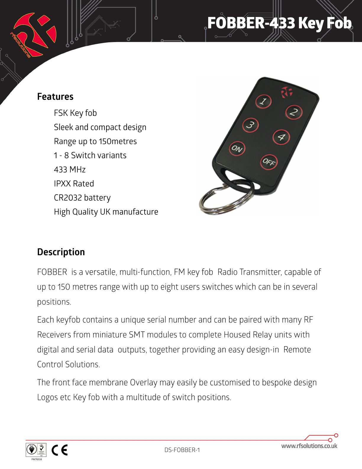 RF Solutions Ltd. FOBBER/FOBLOQ 1, 2, 3, 4, 5, 6 OR 8 BUTTON FM KEYFOB DS FOBBER FCC 1