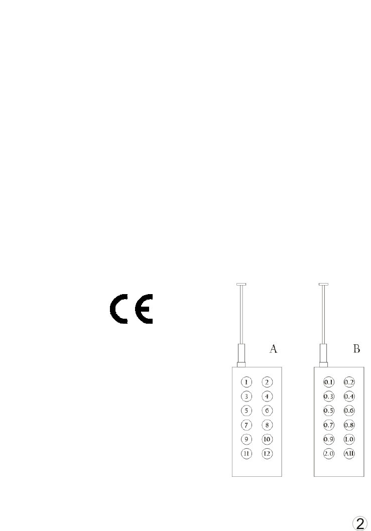 Transmitter B: Interval Firing Transmitter, Buttons have 0.1, 0.2 … 0.9, 1.0, 2.0, ALL. Fires 12 cues of