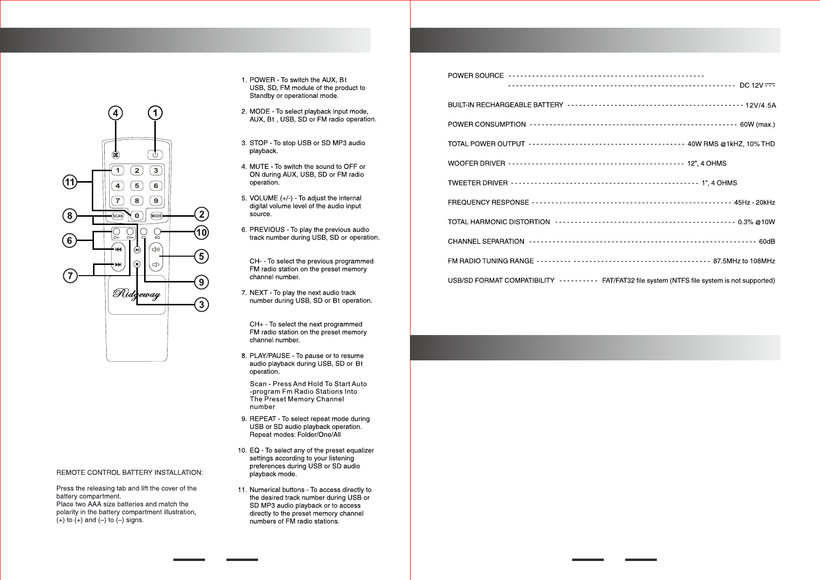 5.Skip -&+ Button: With playing music in USB or Micro SD mode,short press