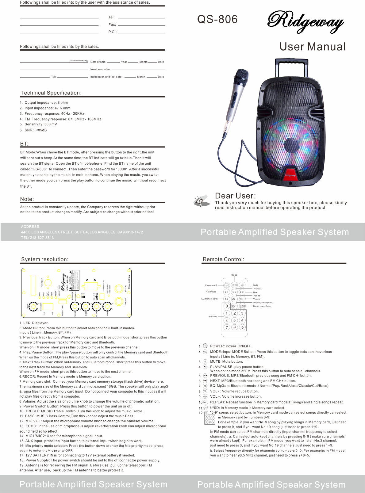 RIDER BEST QS-806B loudspeaker box User Manual C8ABD2B3B4ABD5E6CDBCC6AC