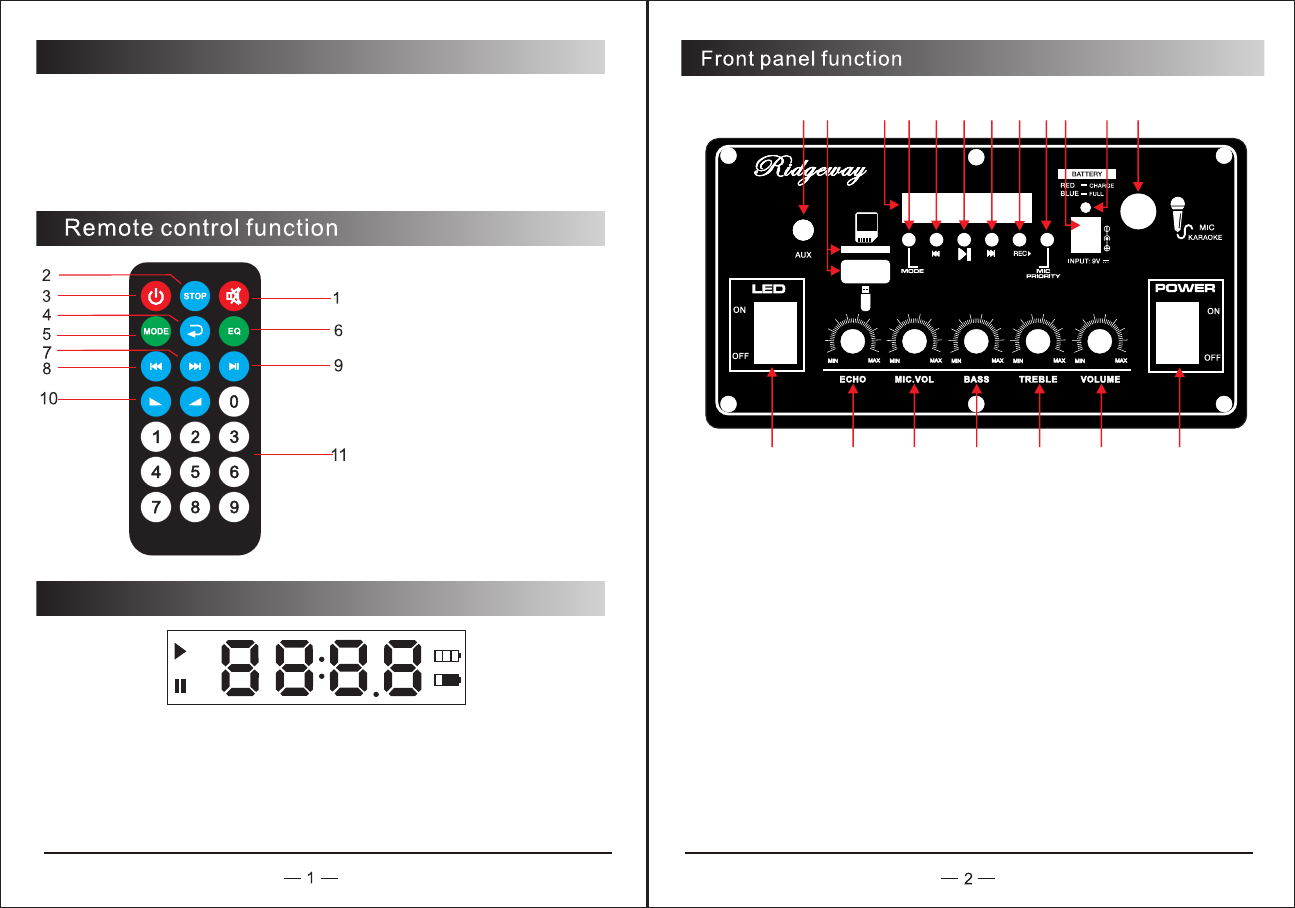 14.The karaoke reverberation,the volume knob to adjust echo volume.