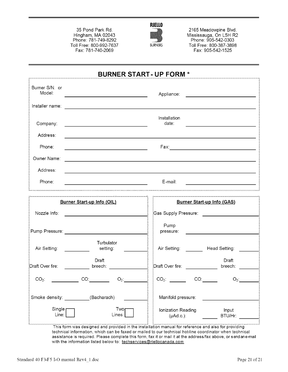 BURNER START- UP FORM *