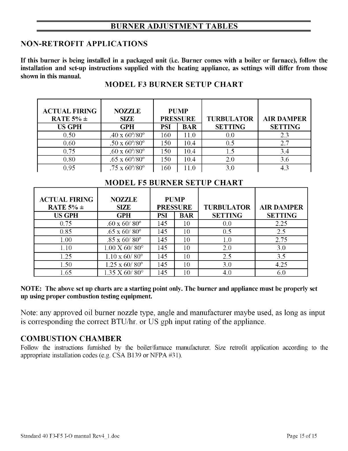 BURNER ADJUSTMENT TABLES .............................................................................. 15